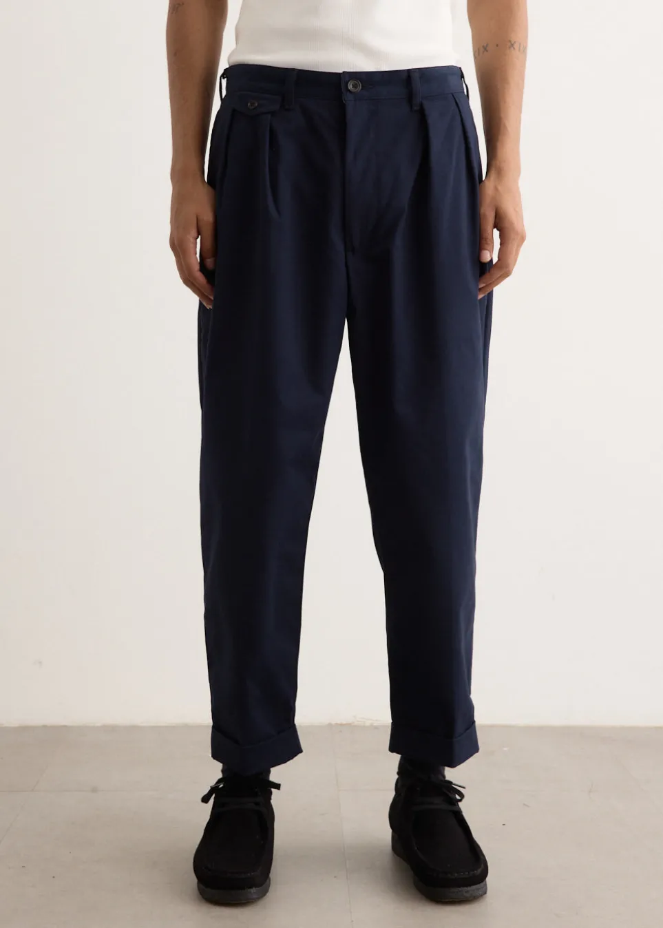 Japanese brand BEAMS PLUS is heavily influenced by Americana, reimagining classic garments by infusing them with a contemporary flair. Made from a mid-weight cotton twill blend, the 2 Pleats Twill Pants are designed with wide, tapered legs that feature double pleats on the front. It’s detailed with rolled cuffs and a small buttoned pocket on the waist for added function.