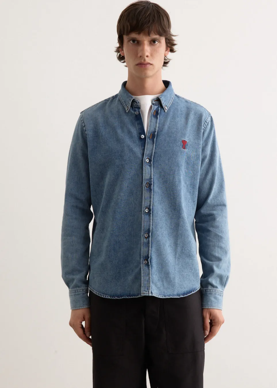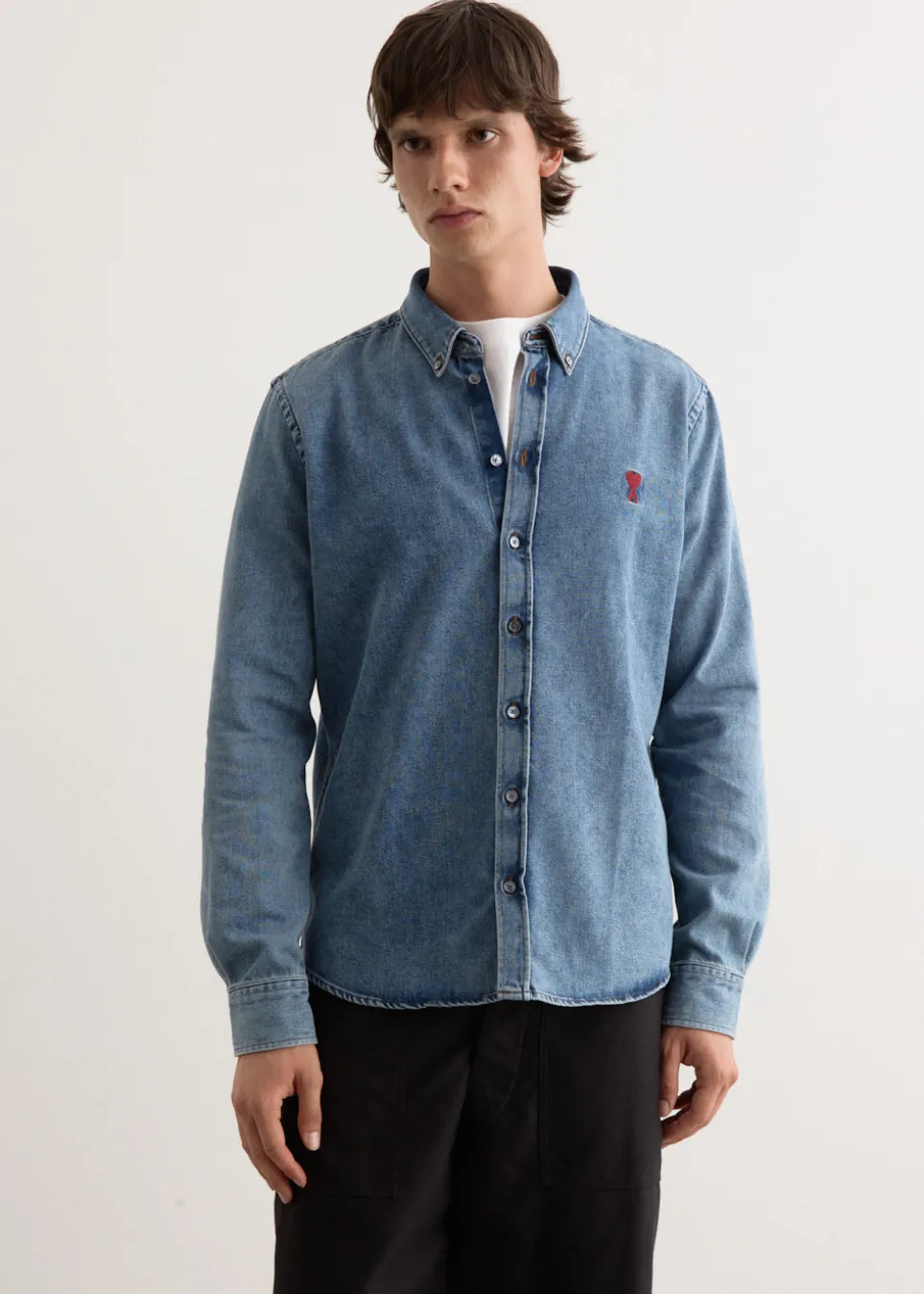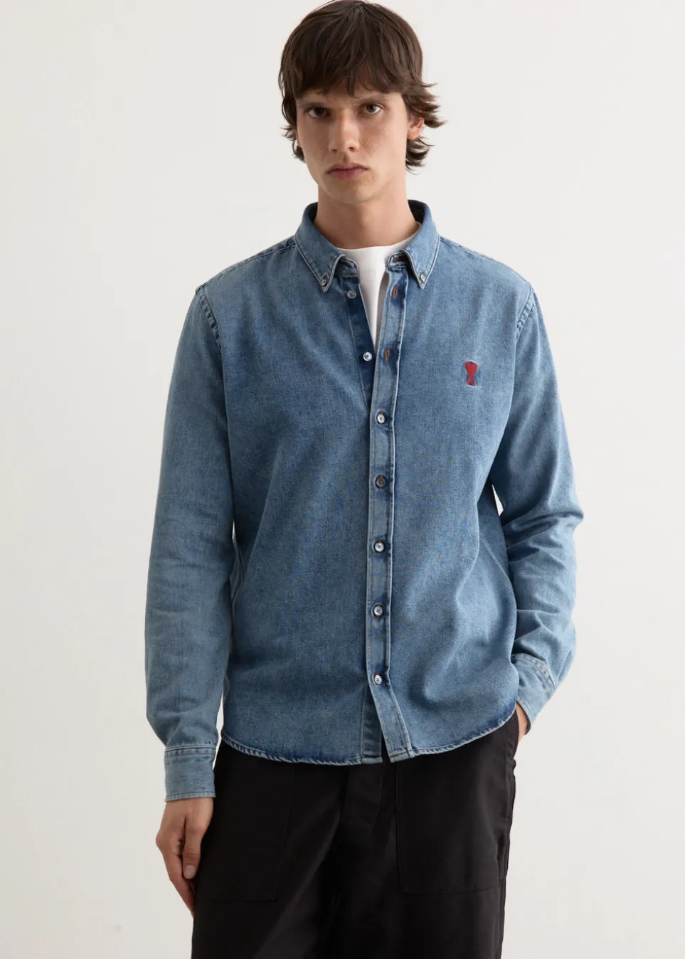 Parisian label AMI blends smart tailoring with a clean and casual aesthetic. Known for everyday staples with a twist, you’ll find the pillars of any wardrobe season after season. Made from cotton denim, the ADC Shirt is cut to a regular fit. It features a traditional button-down collar, alongside buttoned cuffs and ADC chest embroidery for added detail.