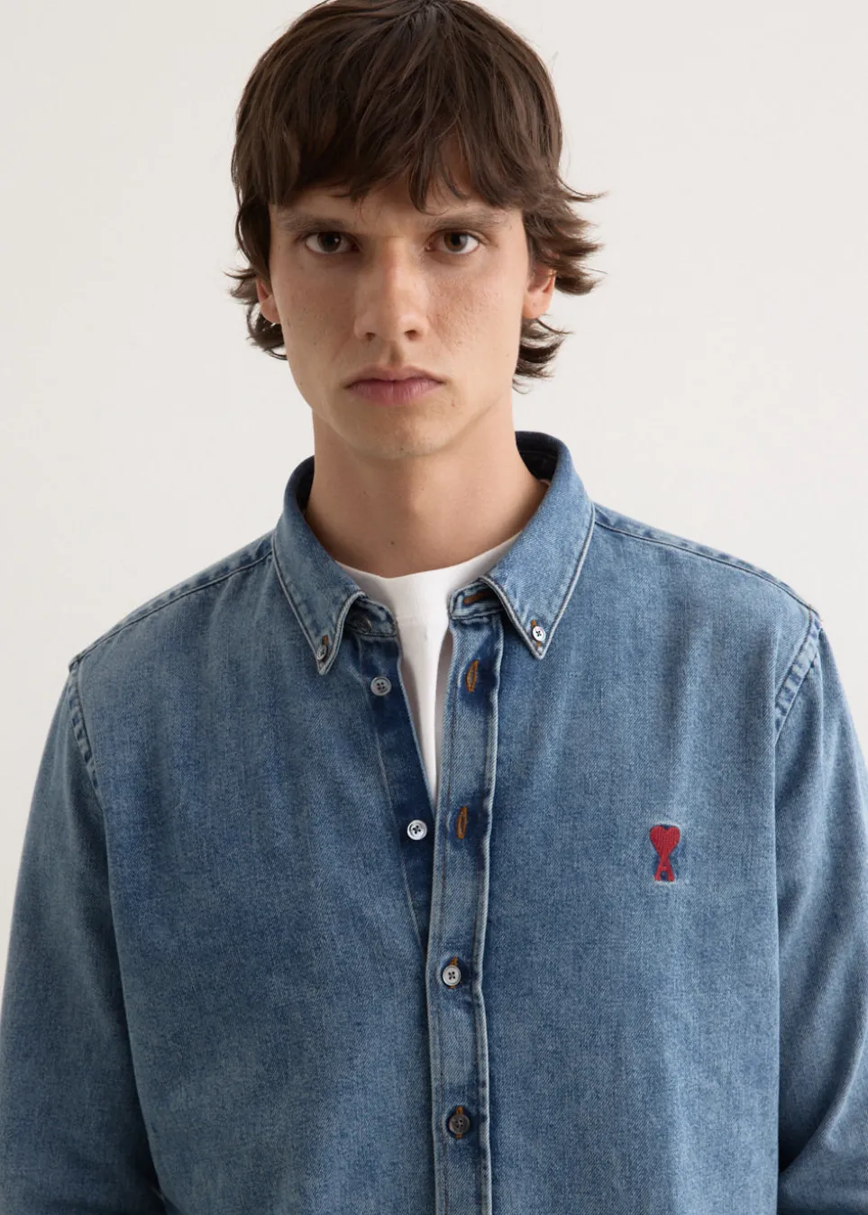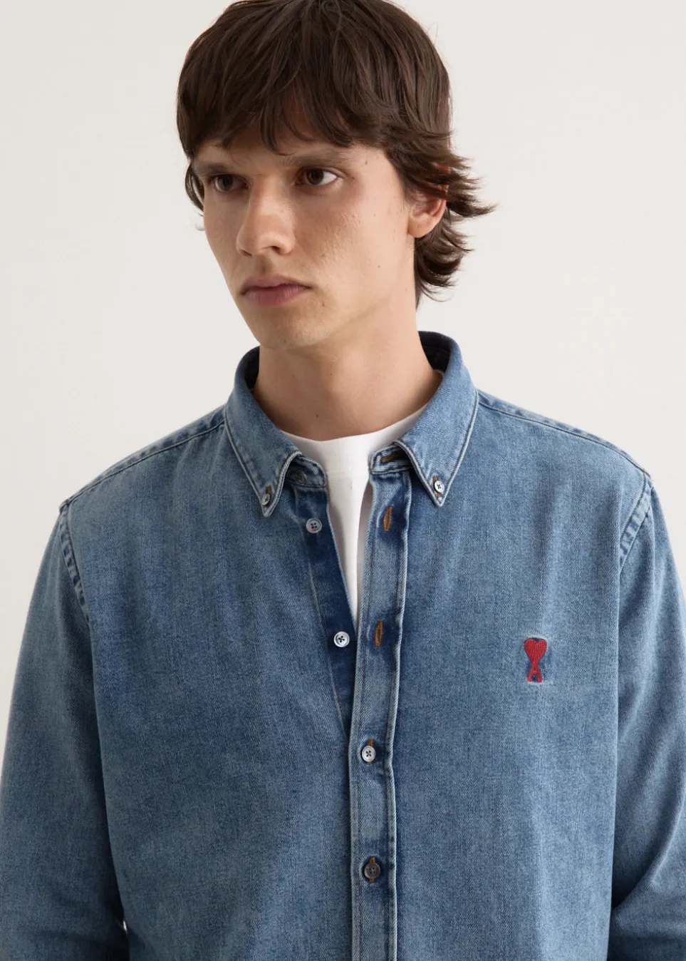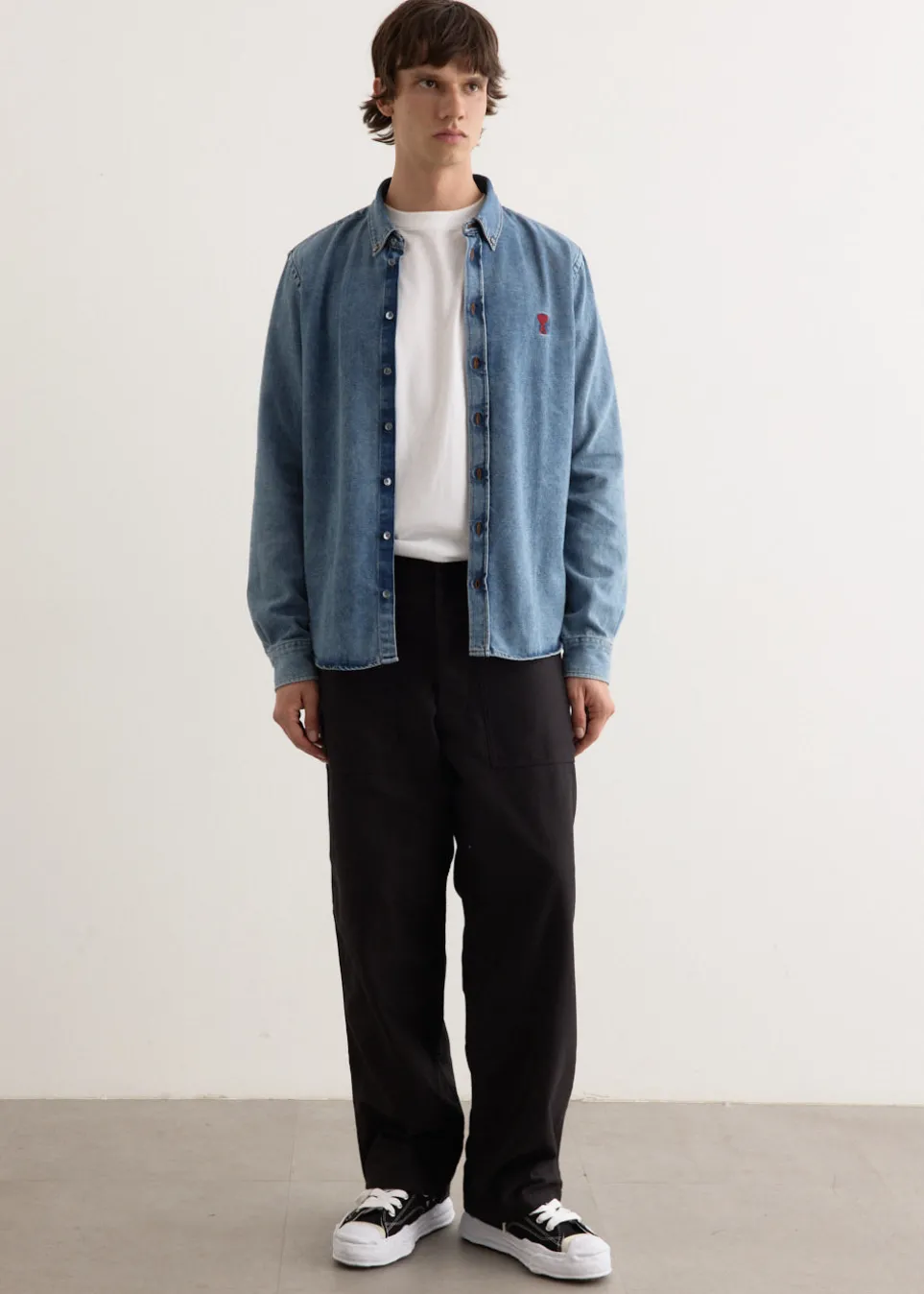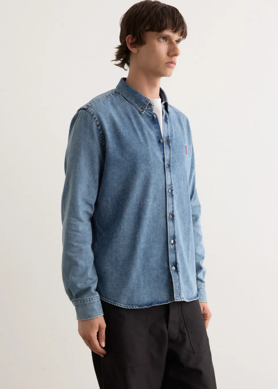 Parisian label AMI blends smart tailoring with a clean and casual aesthetic. Known for everyday staples with a twist, you’ll find the pillars of any wardrobe season after season. Made from cotton denim, the ADC Shirt is cut to a regular fit. It features a traditional button-down collar, alongside buttoned cuffs and ADC chest embroidery for added detail.