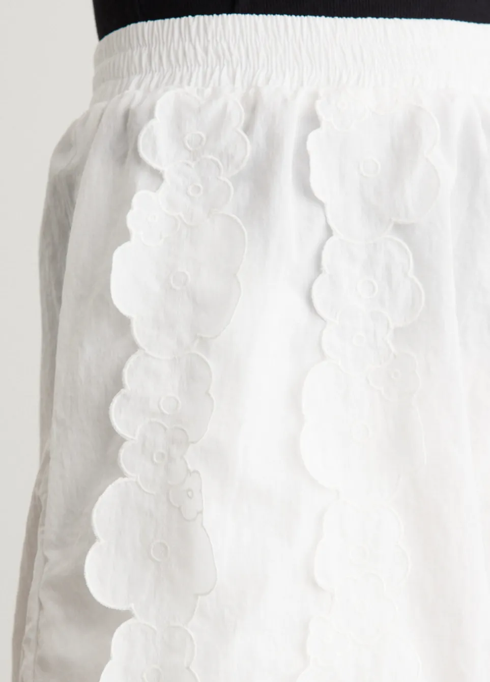 Cecilie Bahnsen, a Danish fashion designer, is renowned for her eponymous brand that blends traditional craftsmanship with contemporary design. Her collections, known for voluminous silhouettes and intricate textures, have earned acclaim for a modern, avant-garde take on femininity. Crafted from recycled taffeta, the Angel Shorts combines the utilitarian appeal of its oversized silhouette with the delicate, on-brand charm of floral découpés.