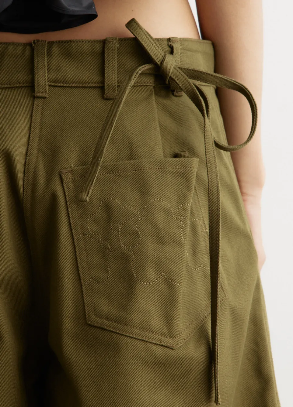 – Tie detailing on back waistband