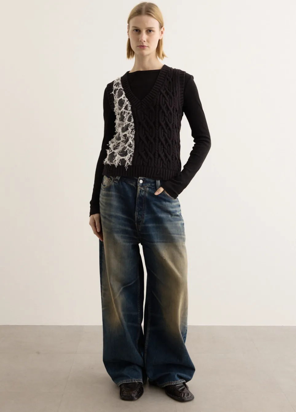The identity of Andersson Bell was inspired by the merge of two contrasting cultures, reinterpreting Scandinavian aesthetic to create garments from a Korean perspective. Crafted from a cotton and wool blend, the Boucle Cable Patchwork Knit Vest boasts a panelled design, featuring both a cable knit and textured boucle knit construction. Cut to a regular fit with a V-neckline, it is finished with ribbed trims and slightly cuffed sleeves, perfect to wear on its own or layered over tees and shirts.