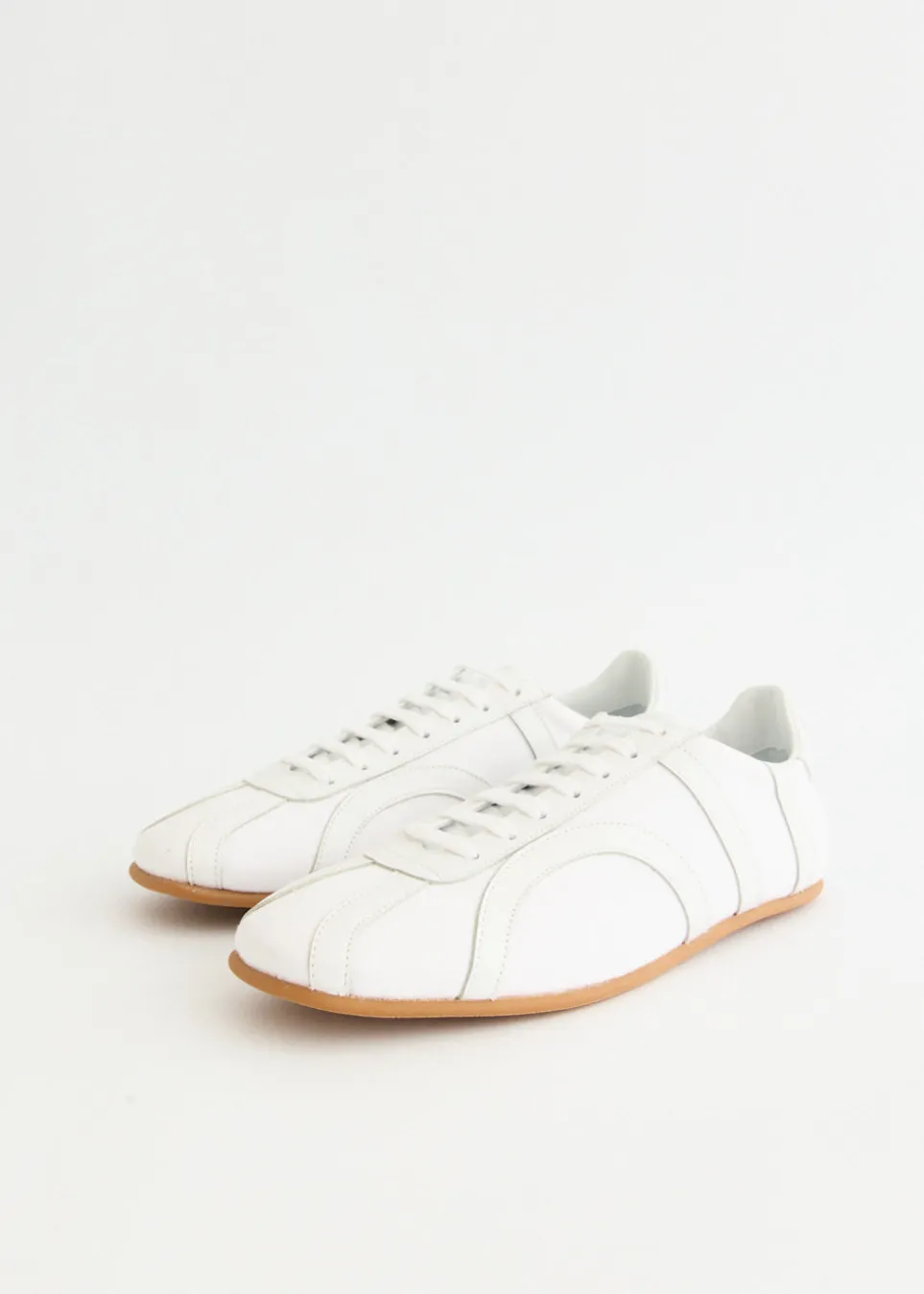 Founded in 2014 by Elin Kling and Karl Lindman, Toteme is a Stockholm-based brand renowned for crafting elevated essentials and timeless wardrobe foundations. Inspired by retro athletic shoes, the Canvas Sneakers showcases the brand’s signature minimalist design. Crafted from cotton-canvas, the sneakers are overlaid with leather strips, slightly squared toes and are adorned with the classic brand signature at the heels.
