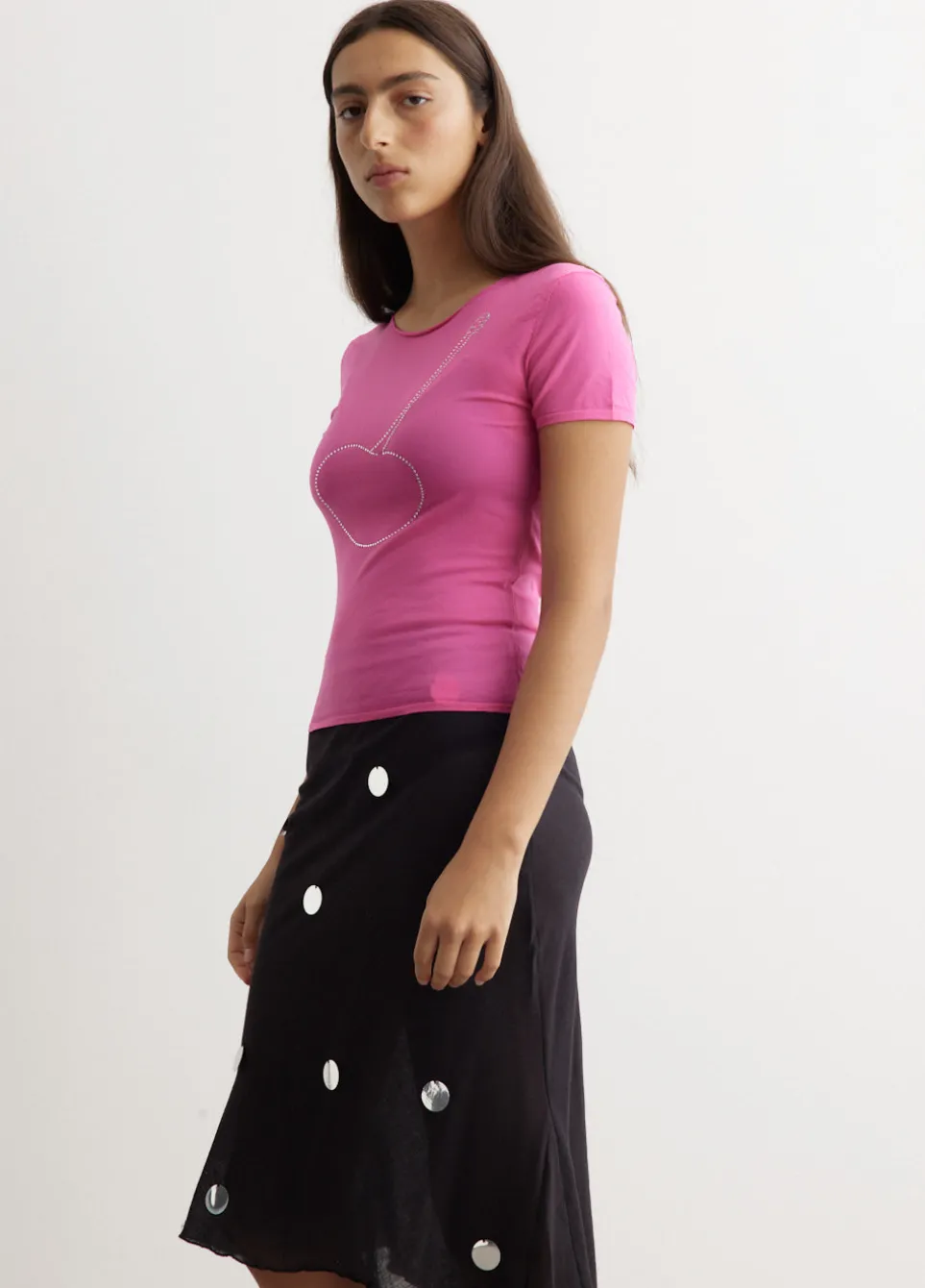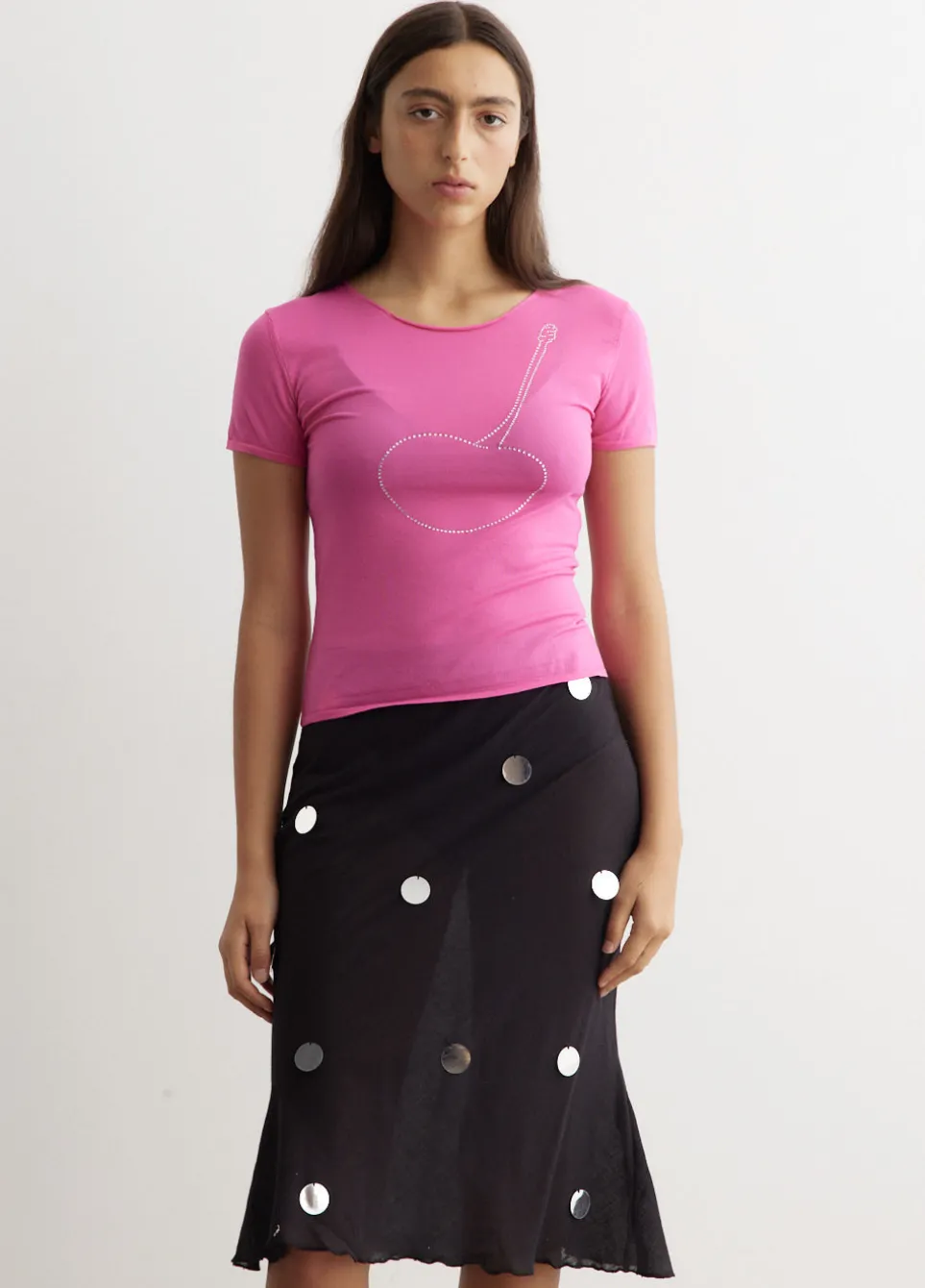 – Cherry rhinestone-embellishment at chest