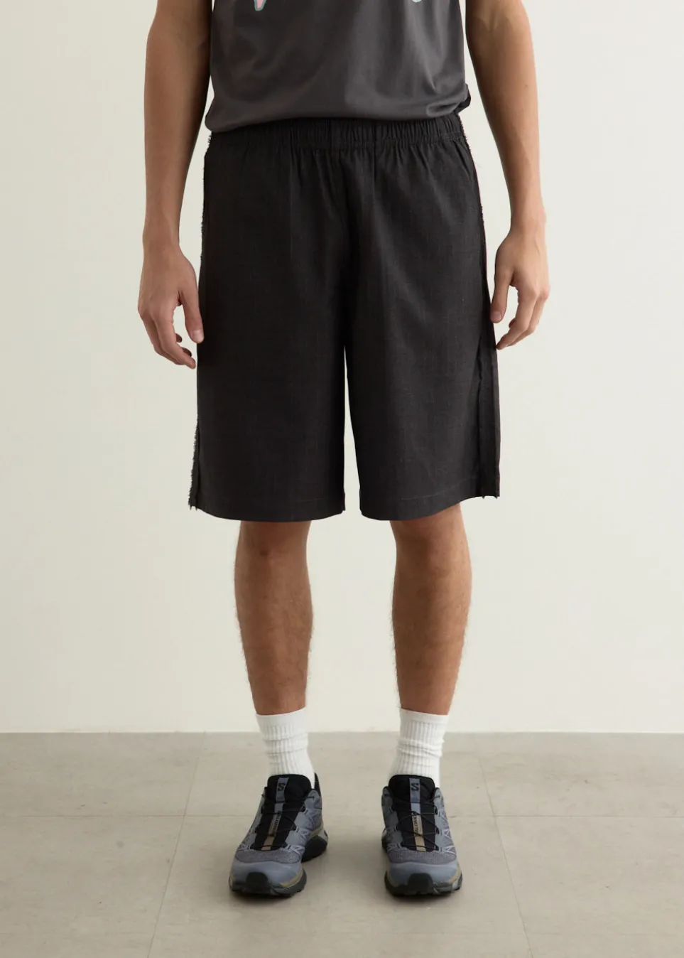 First established in 2000 in Melbourne, Australia, PAM’s umbrella covers music, nightlife, art and most notably its fun and unique approach to fashion. Inspired by classic suiting, the Choose A Russell Shorts are defined by a frayed stripe detailing along the sides. Designed with slanted back welt pocket details and a concealed drawstring waist for all-day comfort and convenience.