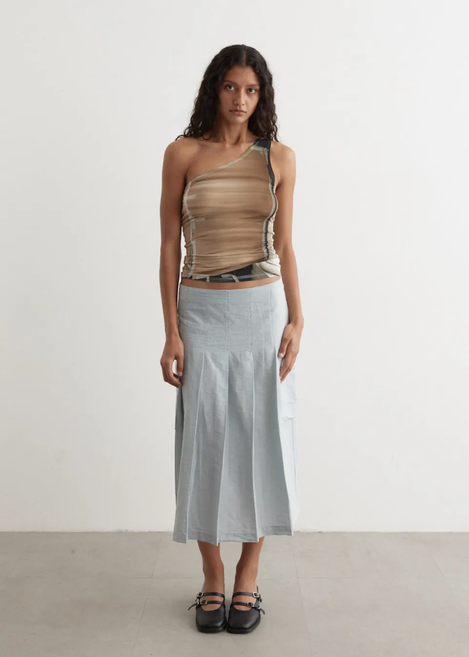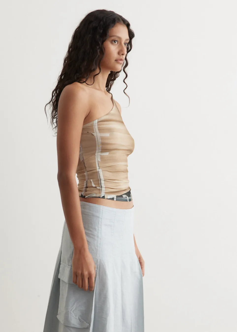 Barcelona-based brand Paloma Wool is renowned for its artisanal quality, retro silhouettes and the art of getting dressed. Made from sheer mesh, the Colu Top features an asymmetrical neckline and is adorned with an all-over print.