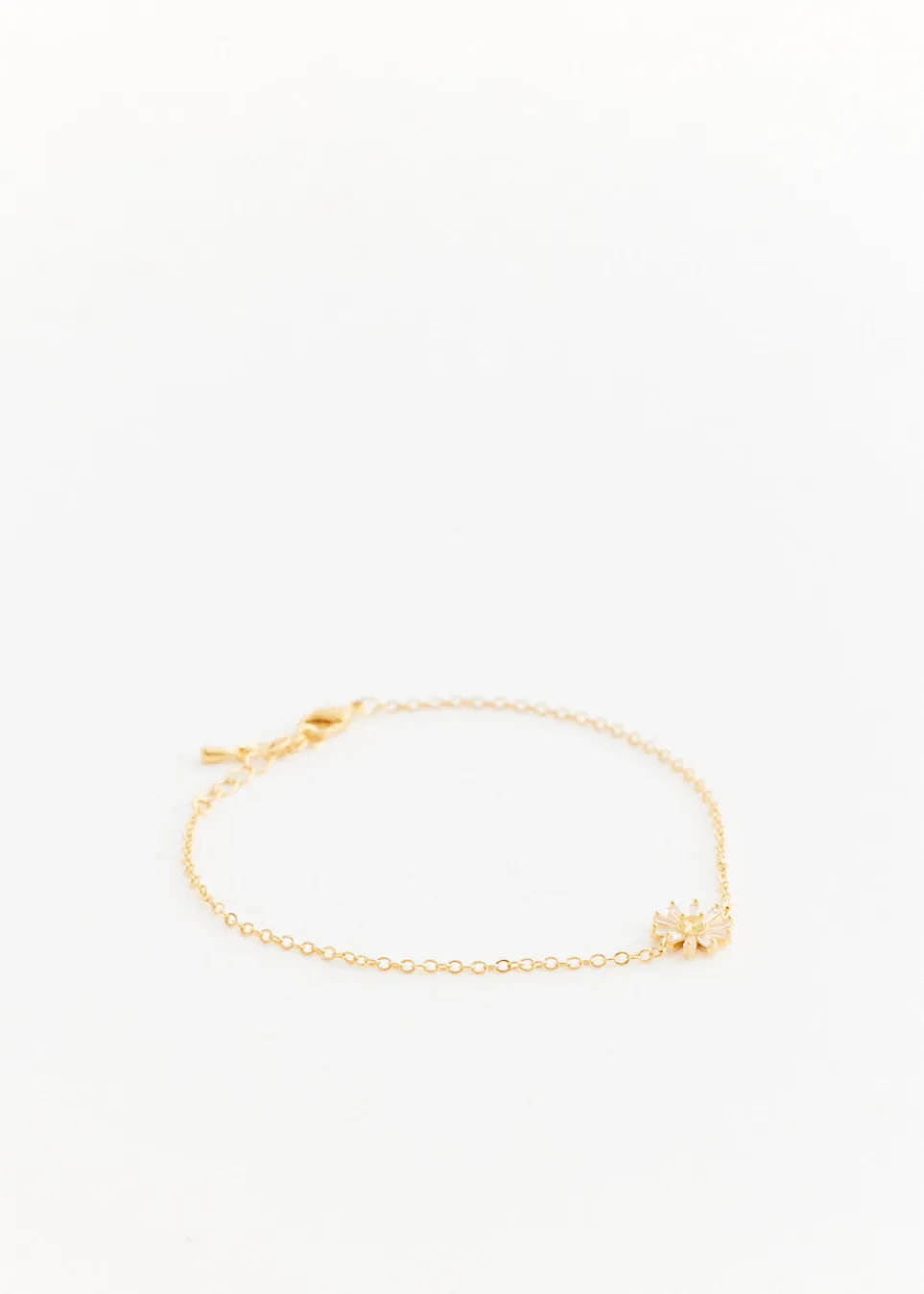 Curated to exude confidence and energy, Incu presents their ‘Incu Jewellery’ collection. Enhance your uniqueness with these vibrant and dynamic pieces for a timeless aesthetic. Crafted in 18k gold-plating, the Darling Bracelet offers a simple chain adorned with a flower-shaped charm with embedded crystals.