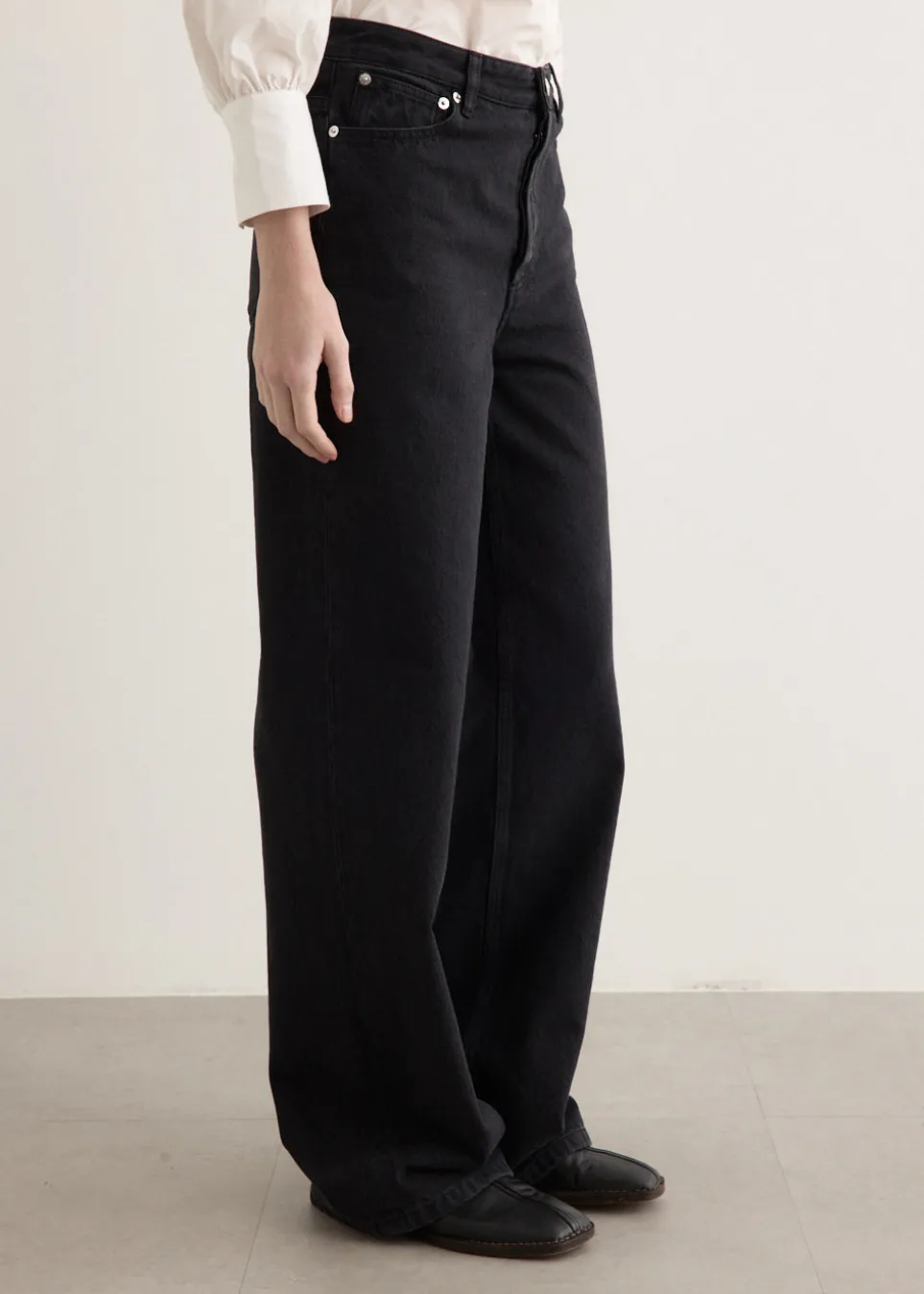 Established in 1987 by fashion designer Jean Touitou, A.P.C. derives from Atelier de Production et de Creation, and is known for its relaxed and minimal approach to design. The Elisabeth Jeans exude a distinct 70s feel. Crafted from black stonewashed denim, it has a wide, straight leg with a high-rise fit and five-pocket construction.