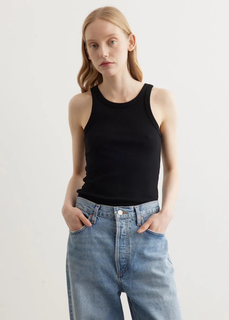 Incu Collection seamlessly blends vintage and contemporary elements, offering modernised 90s tailoring and elevated prints with photographic and abstract imagery. Crafted from a rayon and cotton blend, the Eternity Tank is tailored to a slim fit and completed with ribbed trims, perfect for everyday wear.