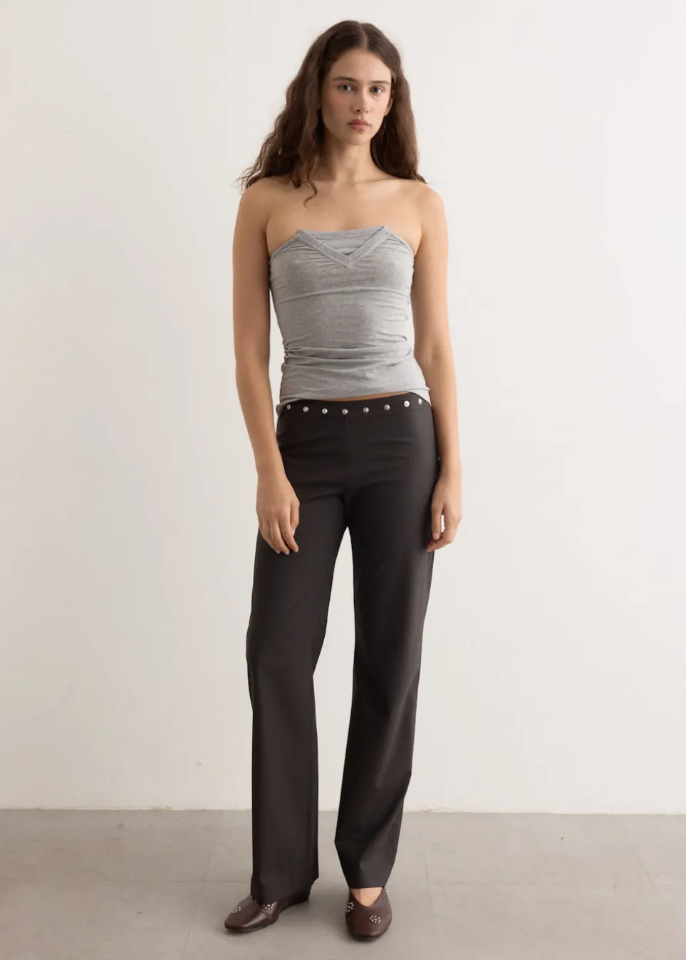 Barcelona-based brand Paloma Wool is renowned for its artisanal quality, retro silhouettes and the art of getting dressed. The Folded V-Neck Top is a fitted bandeau top, designed with a V-neckline folded to resemble a t-shirt.