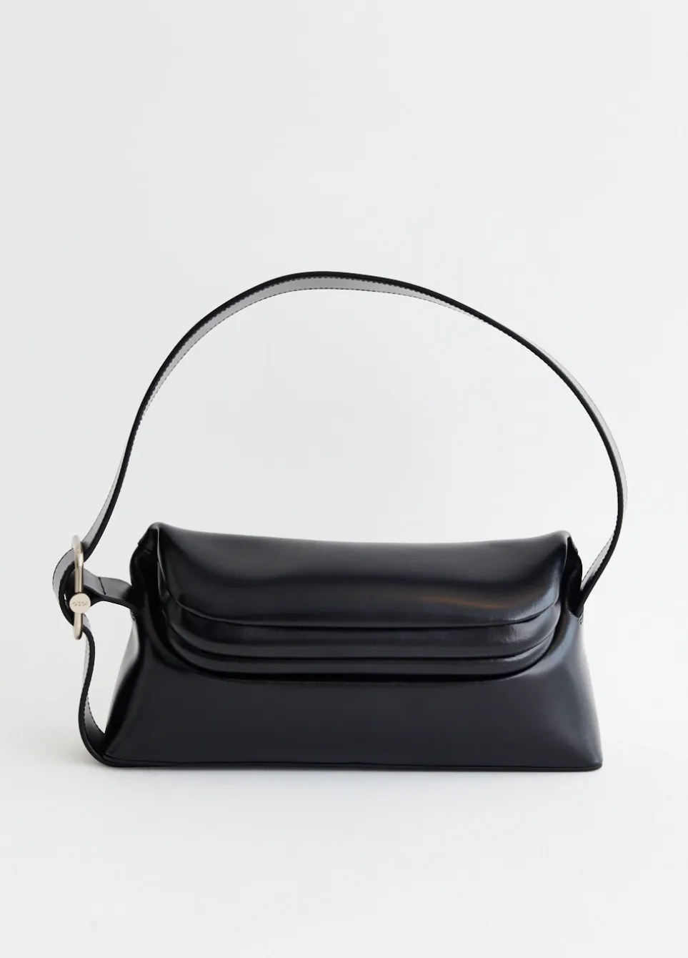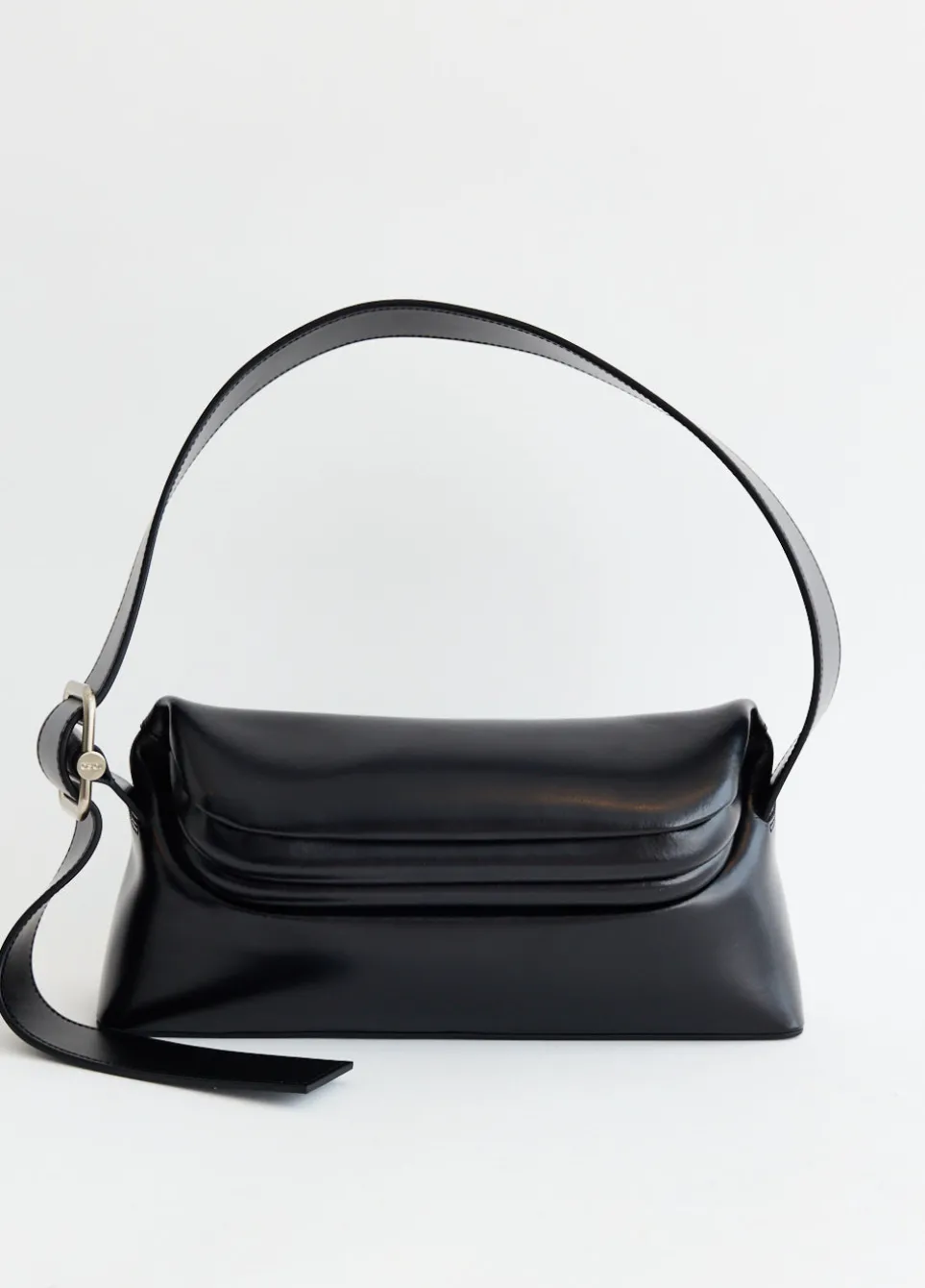 Launched in 2016, South-Korean label OSOI curates a collection of bags and shoes that artfully blend androgynous styles with sophisticated craftsmanship. “Osoi”, a Japanese term meaning “slow and patient”, reflects the brand’s focus on creating timeless designs. Crafted from smooth leather, the Folder Brot Bag features a flap with rigid clutch-style fastening. Detailed with an adjustable shoulder strap, logo printed at the back and an internal flat pocket with silver-tone metal hardware.