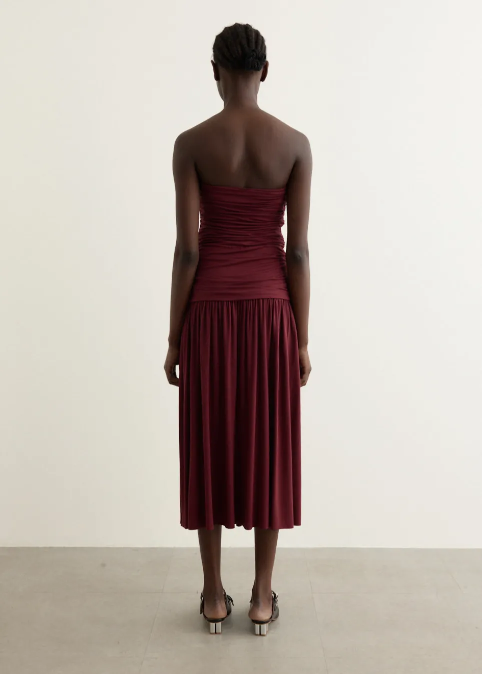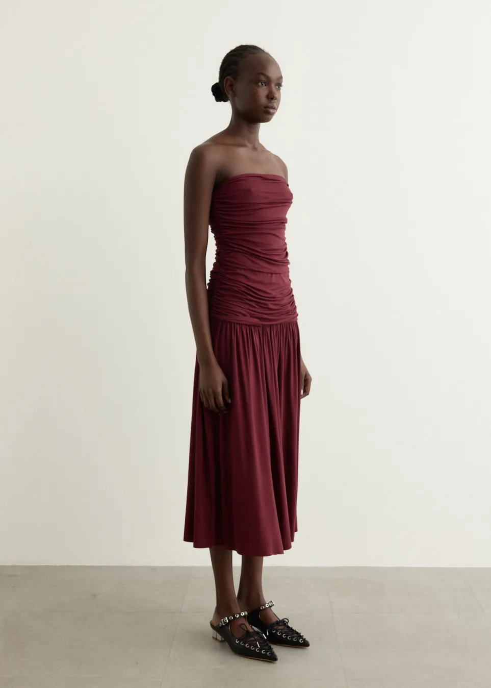 Founded in 2018 by twins Claudia and Sayana Durany, Gimaguas is powered by relationships and conversation. A focus on carefree silhouettes, bespoke prints, technical knitwear and craft-inspired detail. All Gimaguas pieces are designed in Barcelona. Crafted from soft and stretchy viscose, the Fortuna Maxi Dress is cut to a slim fit, featuring a gathered strapless bodice and a flowy skirt.