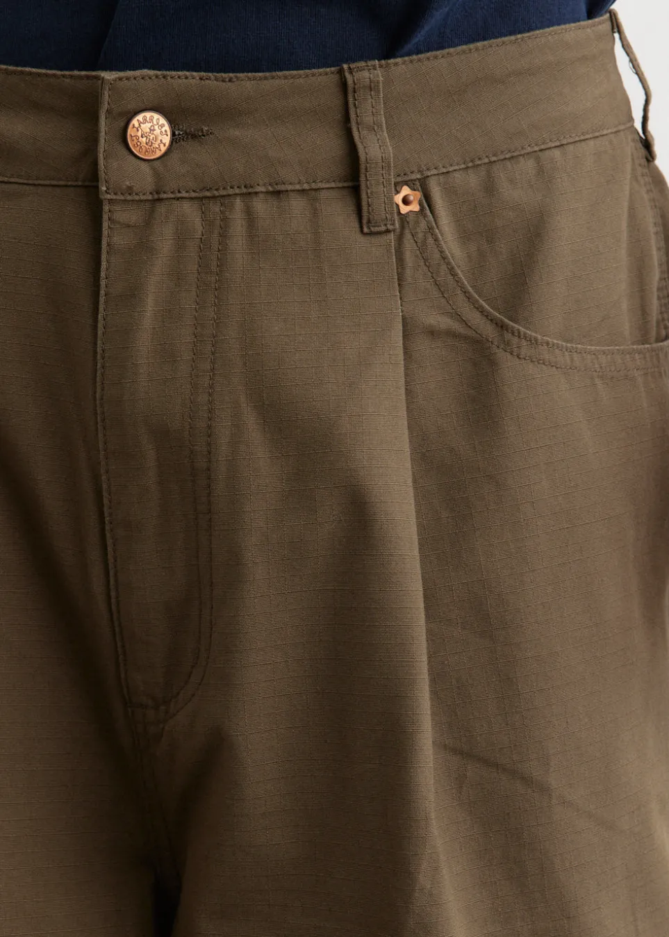 Melbourne-based label Larriet takes its name from the word ‘lasso’, an act of unifying elements with purpose. It represents the brand’s commitment to blending timeless silhouettes with practicality. Crafted from heavyweight cotton ripstop, the Frederick Pants feature a wide leg cut with understated pleats. Designed for durability, it features a reinforced waistband, triple-stitched seams, copper star-shaped rivets, rounded front pockets, and two back welt pockets – one with a snap closure and a Larriet woven label.