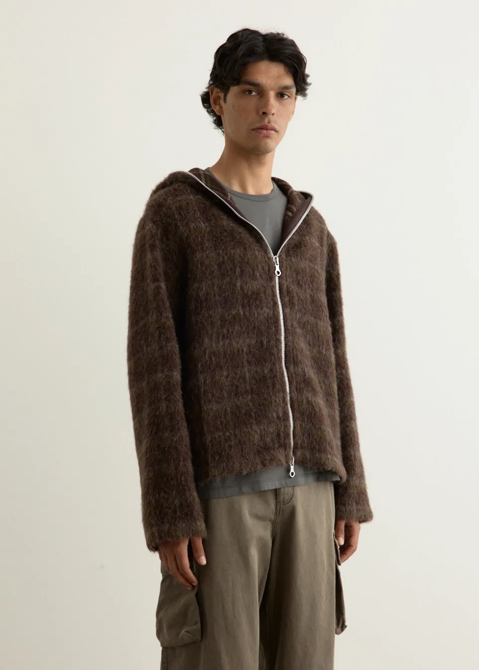 Based in Stockholm, Sweden, Our Legacy has quietly amassed a cult of dedicated followers by blurring the lines between gender, streetwear and classic tailoring. Knitted from a soft, hairy-textured Italian yarn, the Full Zip Hoodie is cut to a relaxed fit and features a two-way full-zip hooded neckline and closure, and finished with an all-over checkered pattern.