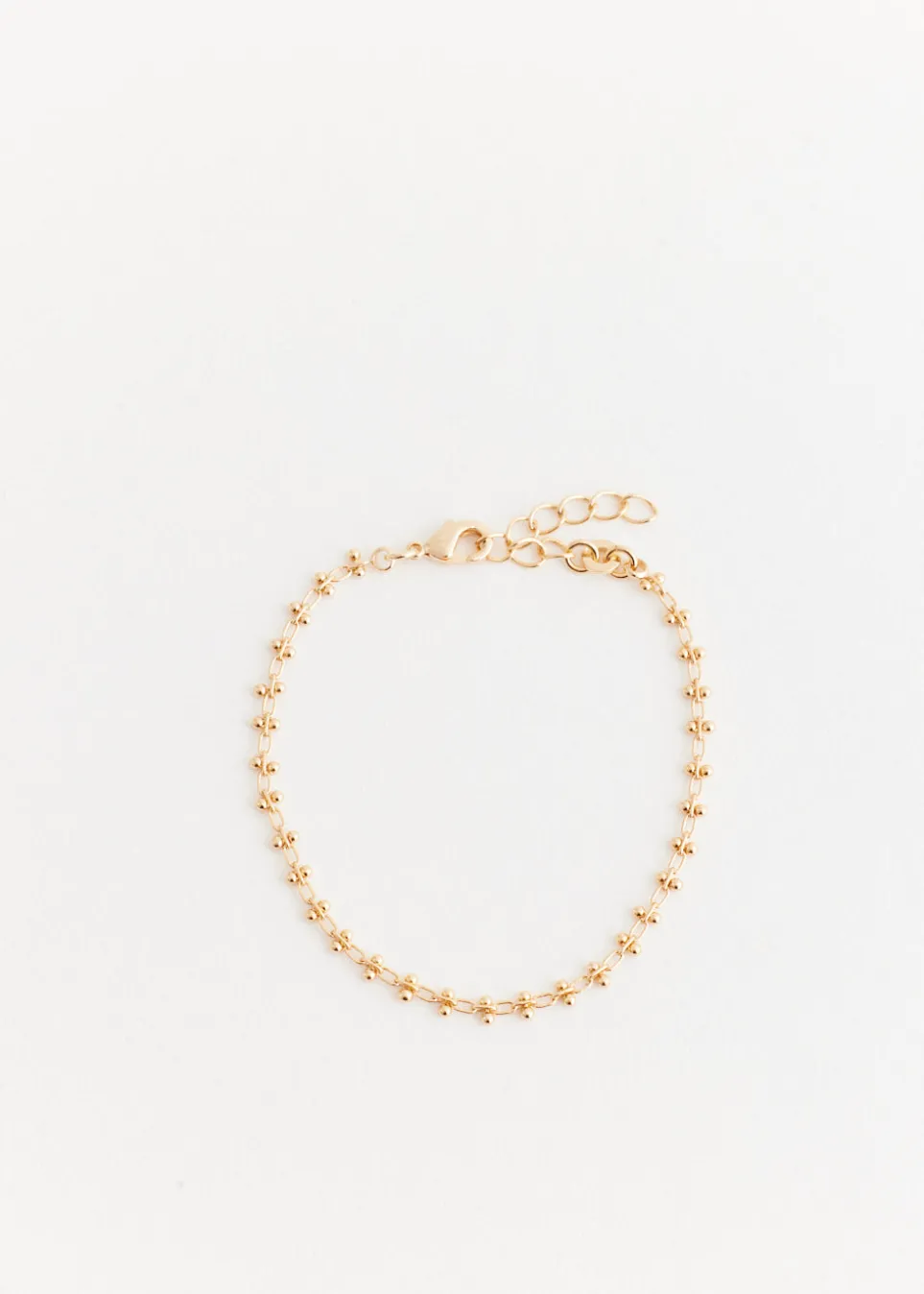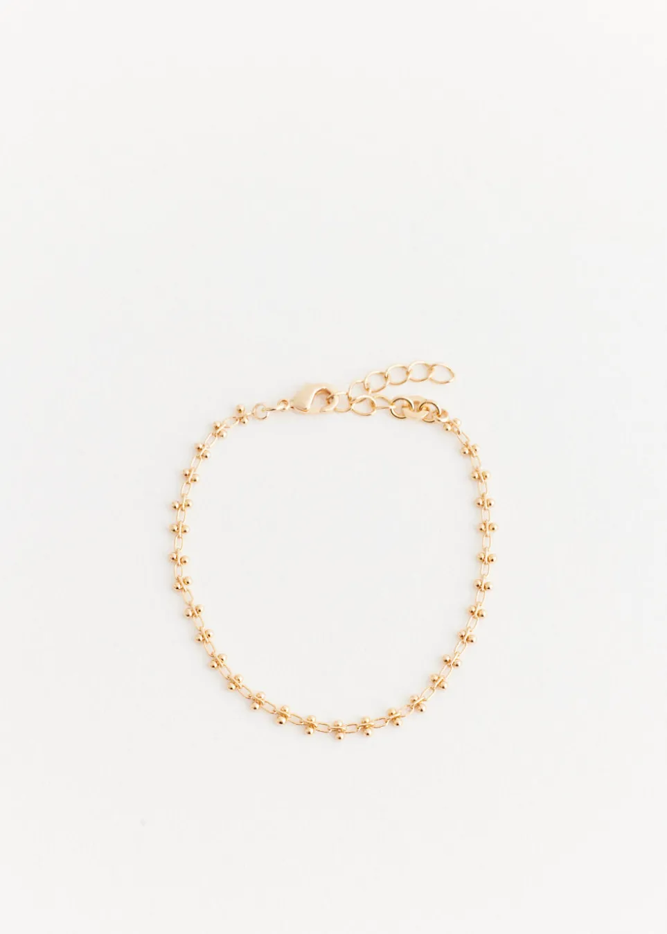 Curated to exude confidence and energy, Incu presents their ‘Incu Jewellery’ collection. Enhance your uniqueness with these vibrant and dynamic pieces for a timeless aesthetic. Crafted in 18k gold-plating, the Gold Plated Bracelet features round links with bead detailing and secured by a lobster clasp.