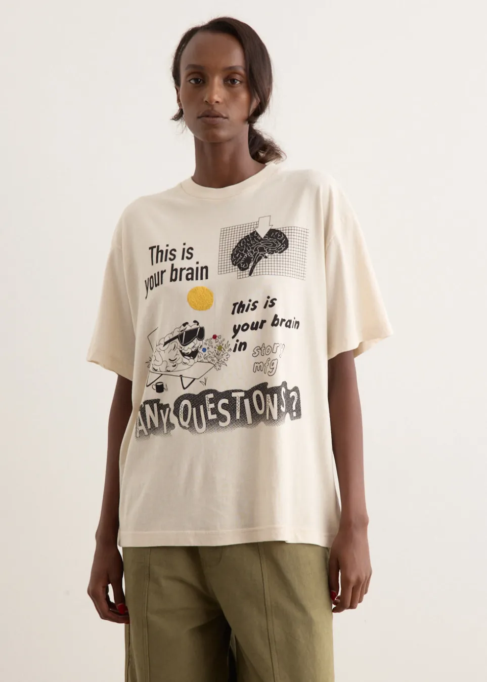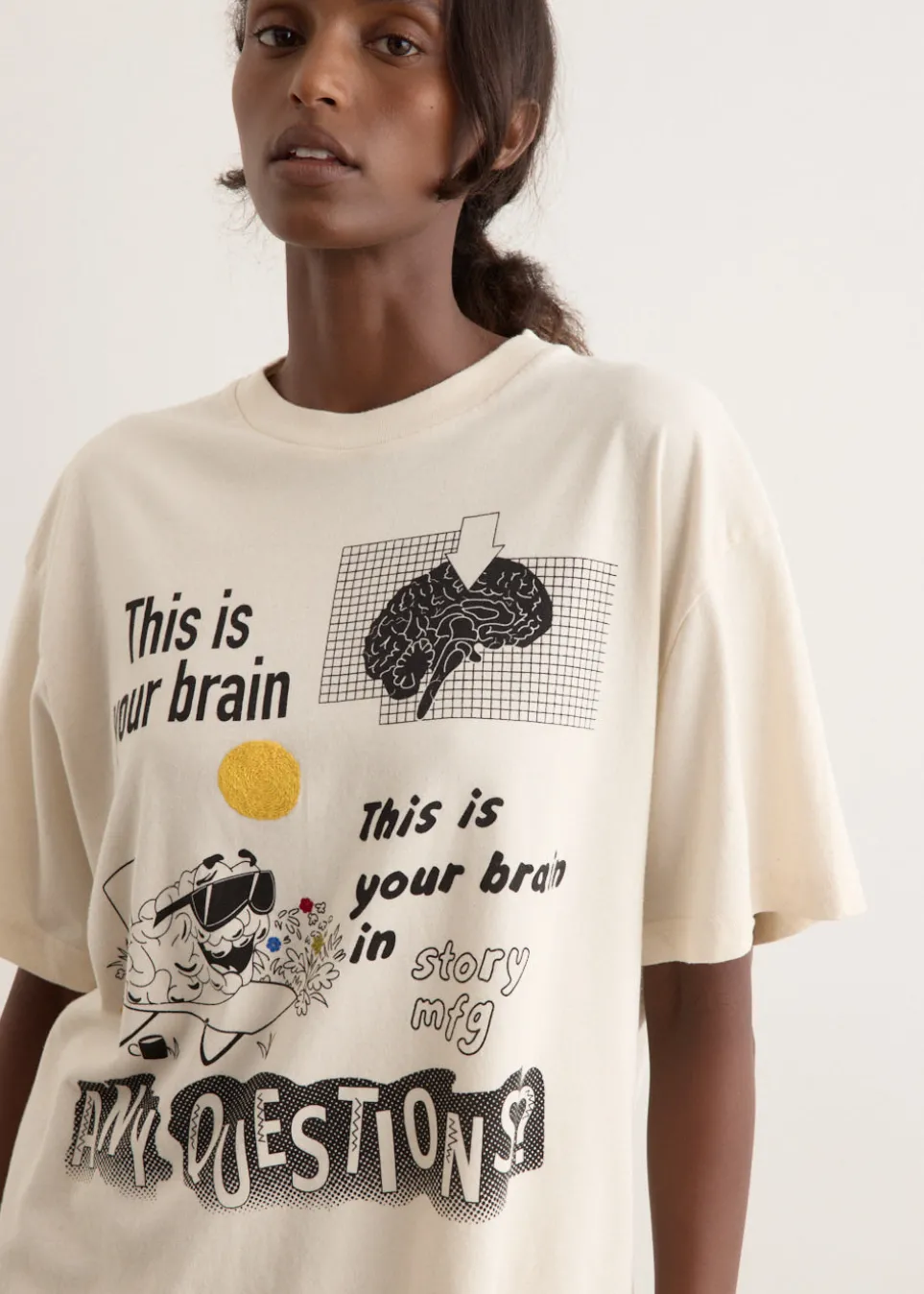 With an ethical approach to production, STORY mfg. looks to biodegradable materials, natural dye processes and local craftsmanship to create each collection. Made from organic cotton, the Grateful T-Shirt is adorned with a playful graphic print on the front and hand embroidered details.