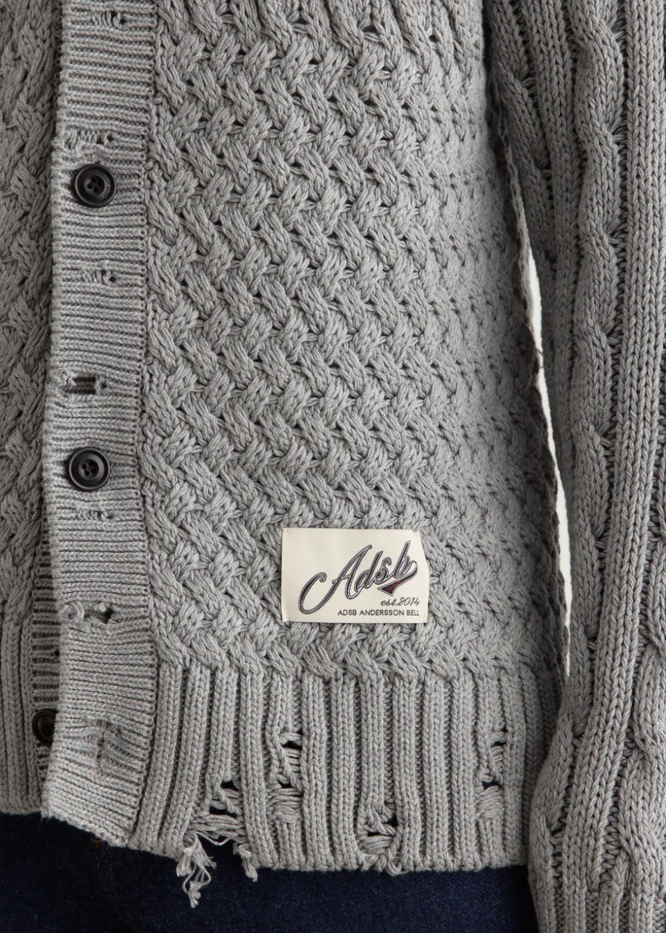 The identity of Andersson Bell was inspired by the merge of two contrasting cultures, reinterpreting Scandinavian aesthetic to create garments from a Korean perspective. Knitted from mid-weight cotton, the Green Collar V-Neck Cardigan boasts a relaxed fit and distressed accents throughout, complete with a woven logo patch near the hem.