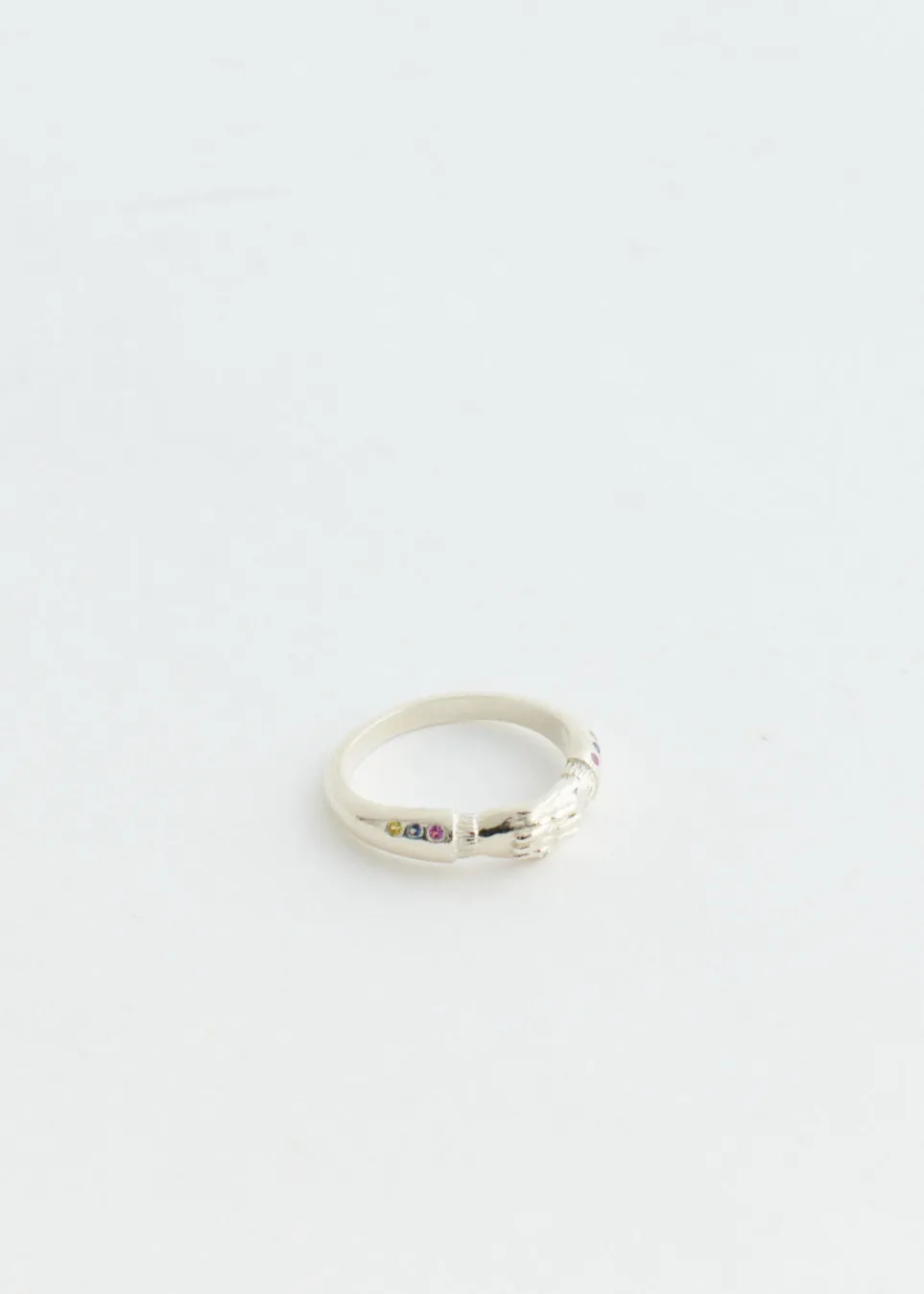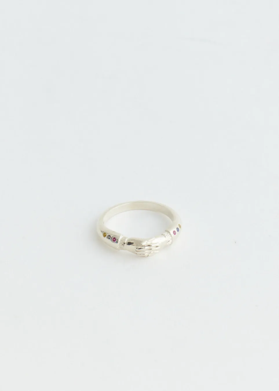 Founded in 2018, Bleue Burnham’s eponymous label aims to be “a force for good with genuine ambition to improve our current environmental position”, with carefully crafted jewellery made from precious stones and metals. The Hands of Thought Ring is crafted by hand from 925 sterling silver with 6 set lab grown sapphires and holding hands carved at the centre.