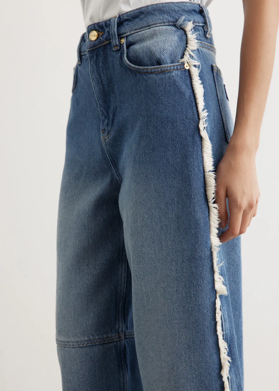 – Distressed detailing on side of legs