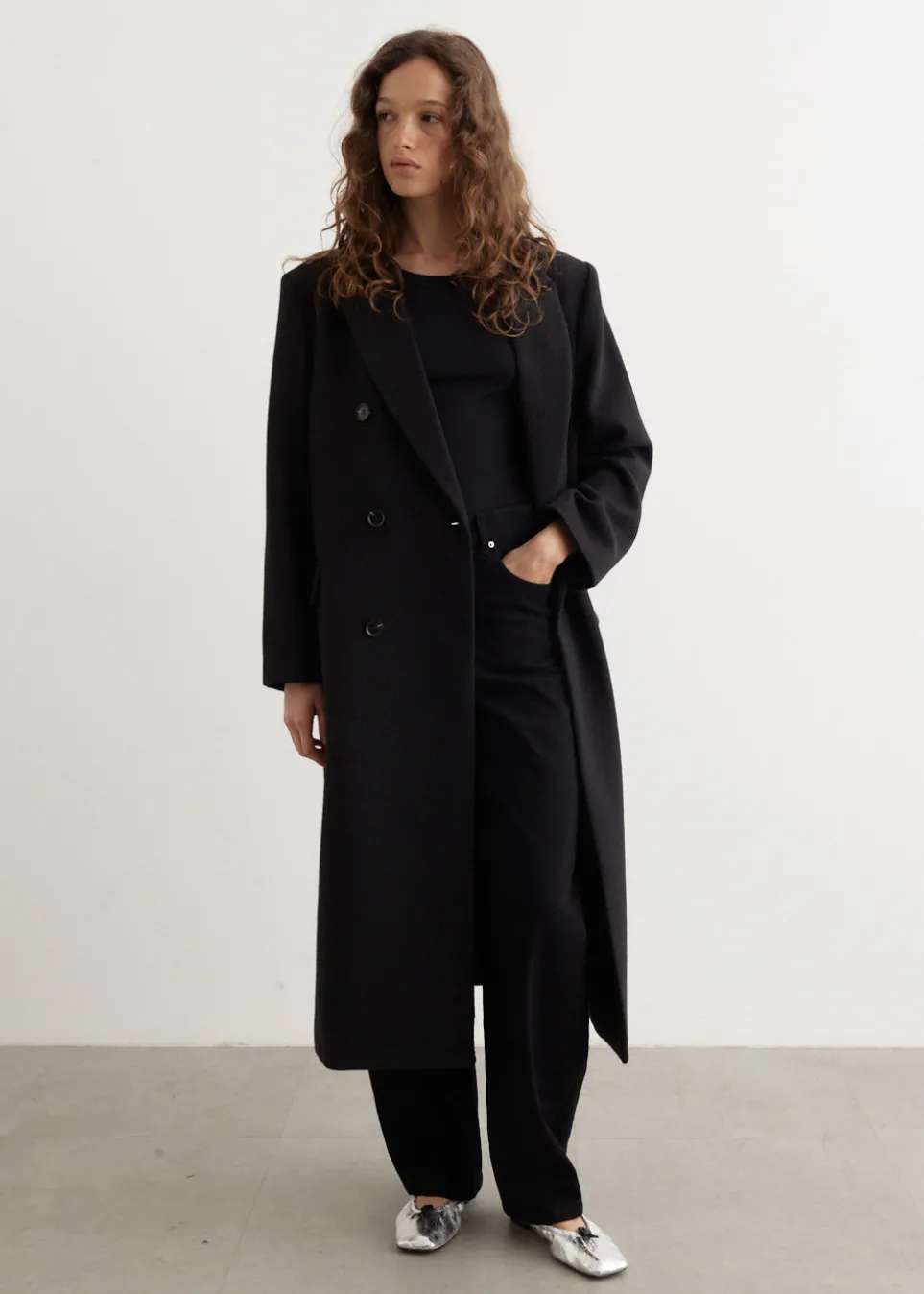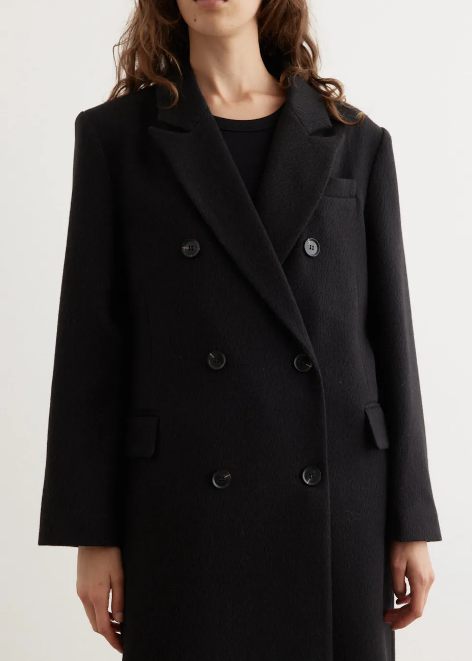 Incu Collection seamlessly blends vintage and contemporary elements, offering modernised 90s tailoring and elevated prints with photographic and abstract imagery. The Herring Textured Blazer Coat is a long tailored double-breasted coat, crafted from a textured wool blend fabric. It is cut to an oversized fit as a blazer silhouette for an elevated tailored look.
