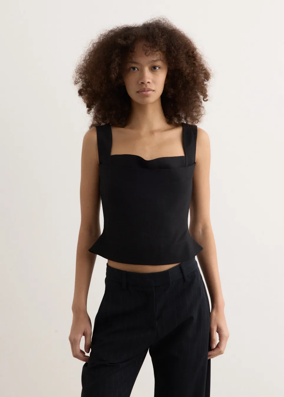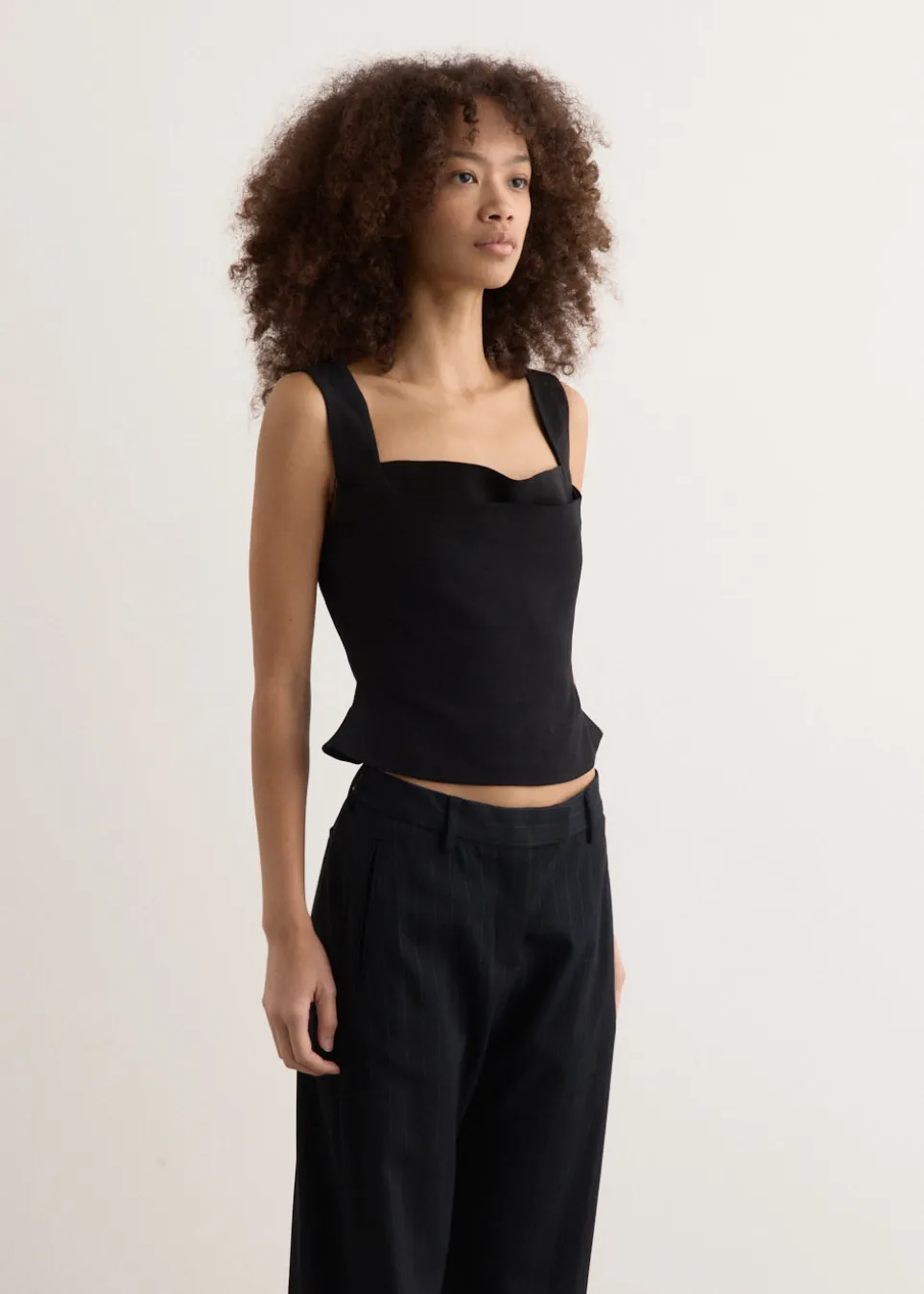 MIAOU was born where French-girl style meets Southern California-cool. The label takes vintage silhouettes and turns them into elevated, contemporary garments which echo supermodel style from the ’90s. Cut from stretch crepe, the Imogen Corset boasts a squared cowl neckline and back-boned bodice.
