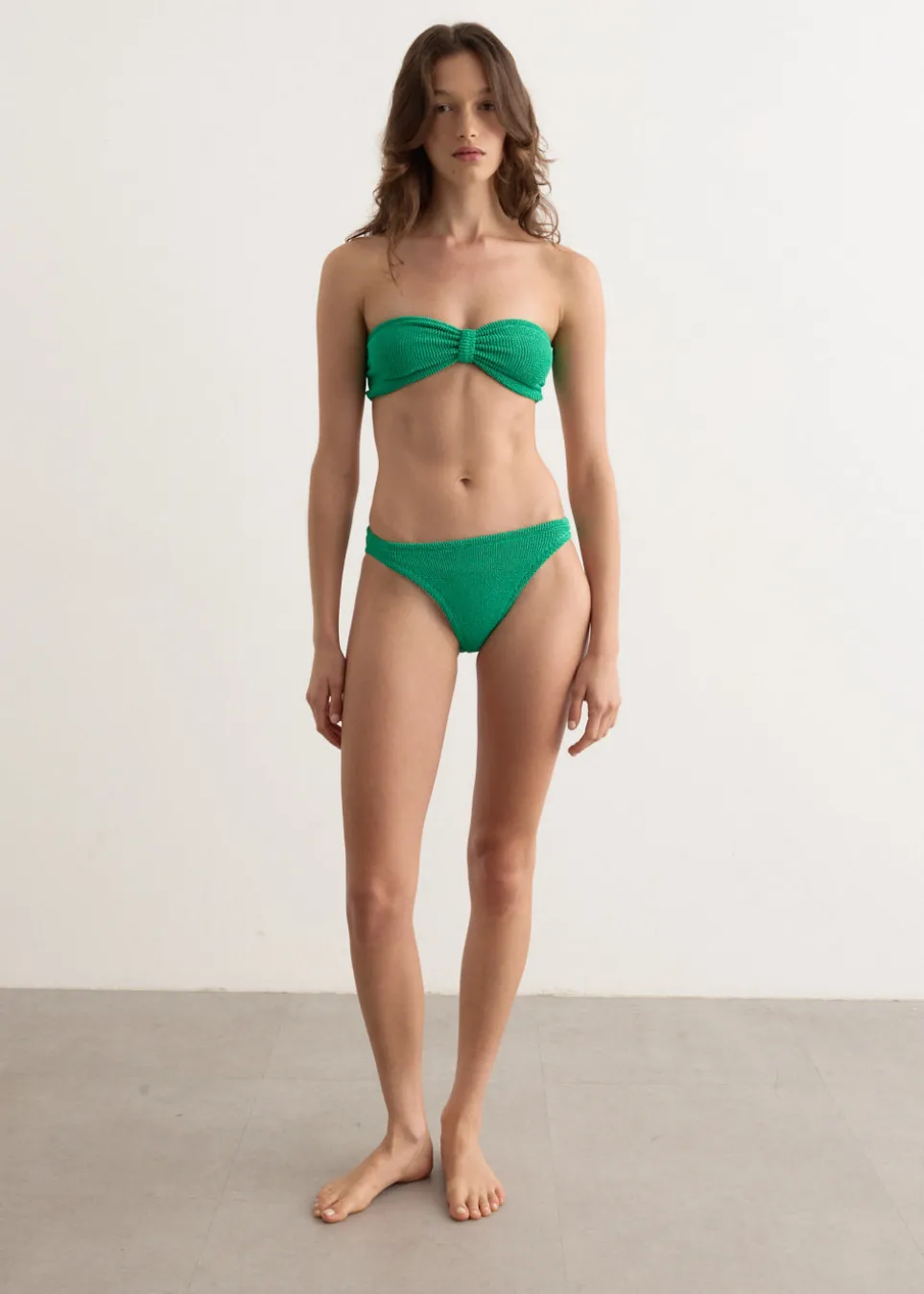 Make a splash in Hunza G’s signature seersucker swimsuits. This season’s one-size-fits-most collection arrives in retina-grabbing orange and lilac hues. The Jean Bikini is a strapless style with a high cut leg, in the brand’s signature stretch seersucker fabric.