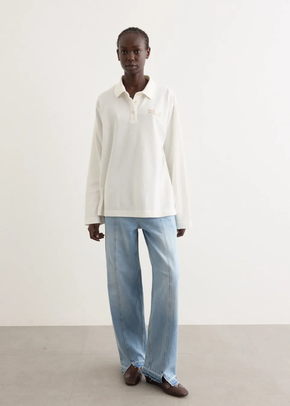Brainchild of the designer duo Rikke Baumgarten and Helle Hestehave, Baum und Pferdgarten is the Danish label that blends modern feminine style with a playful sensibility. Crafted from cotton jersey, the Jeanne Shirt is cut to a relaxed fit, featuring a polo neckline and a three-button placket, finished with a logo embroidery on the chest for a branded accent.