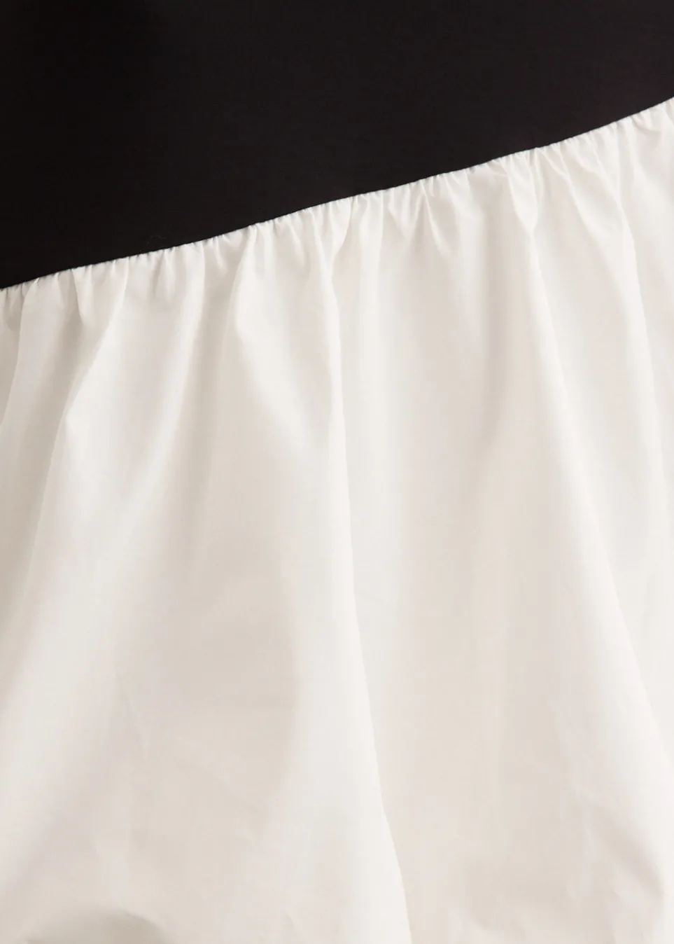 – Contrast voluminous skirt with bubble hem