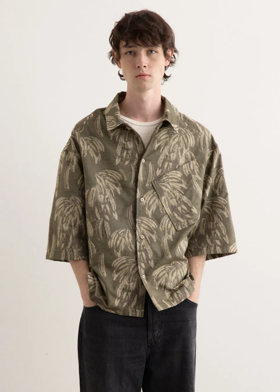 Vivacious and modernist French fashion-house, Jacquemus, can be described as a phenomenon. The brand’s accessories and ready-to-wear collections are consistently awe-inducing season after season. Crafted from cotton jacquard with a banana motif, the La Chemise Aloe is cut to a straight, boxy fit. It features a slanted chest pocket and a J” locker loop for added style.