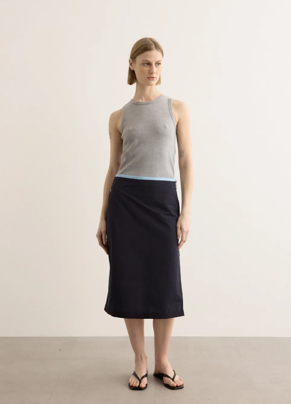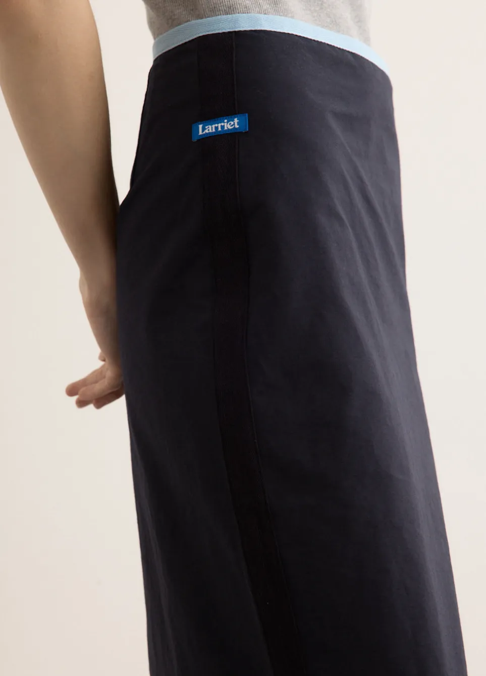 Melbourne-based label Larriet takes its name from the word ‘lasso’, an act of unifying elements with purpose. It represents the brand’s commitment to blending timeless silhouettes with practicality. Crafted from a cotton-nylon blend, the Lantra Skirt delivers a mid-waist skirt that falls just below the knee. It features a side seam zip, contrast zipper tape and is finished with contrast herringbone trims for a distinct edge. Style with your favourite tank for a sportswear-inspired look.