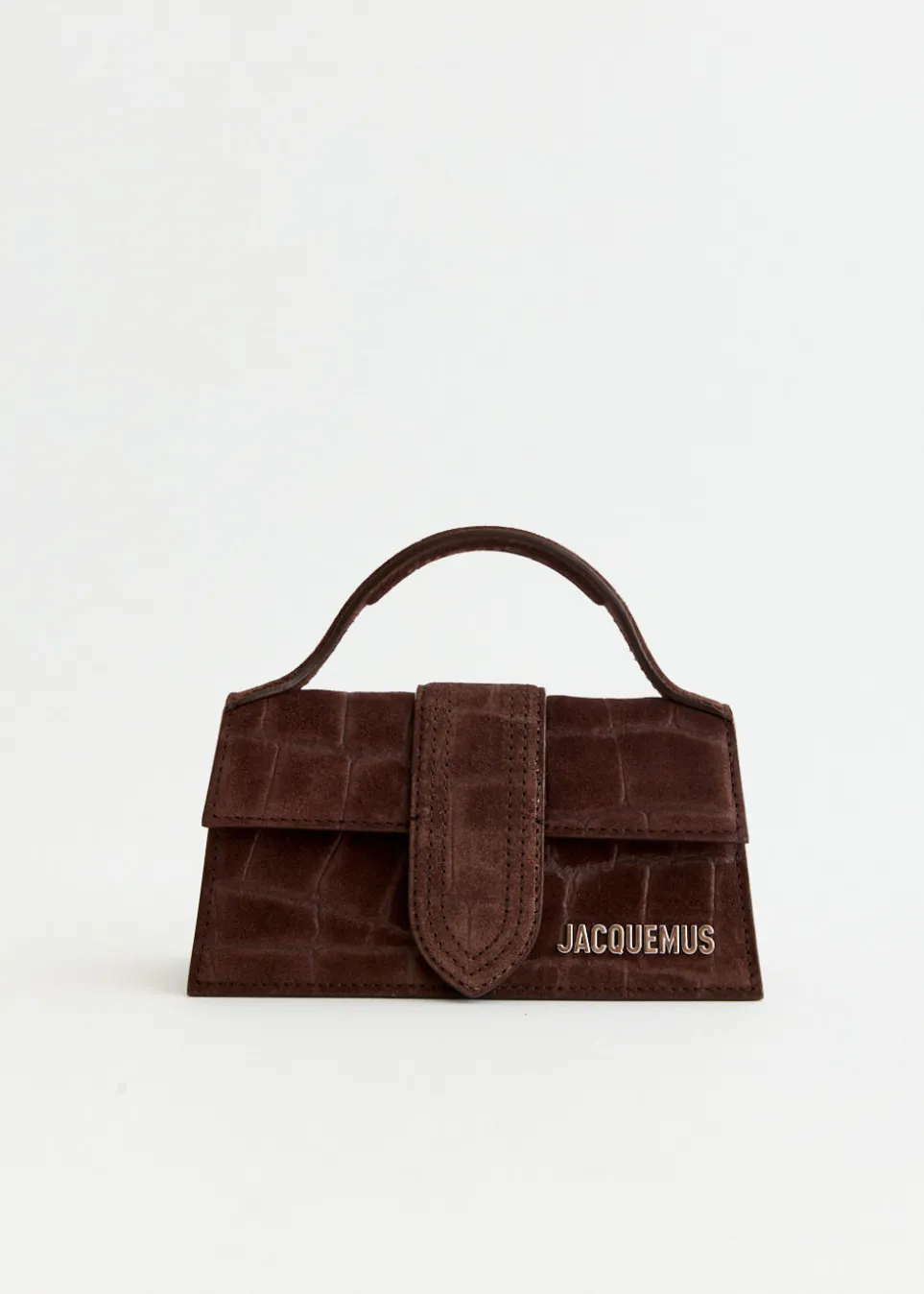 Vivacious and modernist French fashion-house, Jacquemus, can be described as a phenomenon. The brand’s accessories and ready-to-wear collections are consistently awe-inducing season after season. The Le Bambino Handbag is crafted from croc-embossed suede leather. Featuring a removable strap, magnetic flap closure, padded top handle and finished with a silver-toned metal logo and hardware detailing. Dress up or down, with jeans or a cocktail dress – day to night.