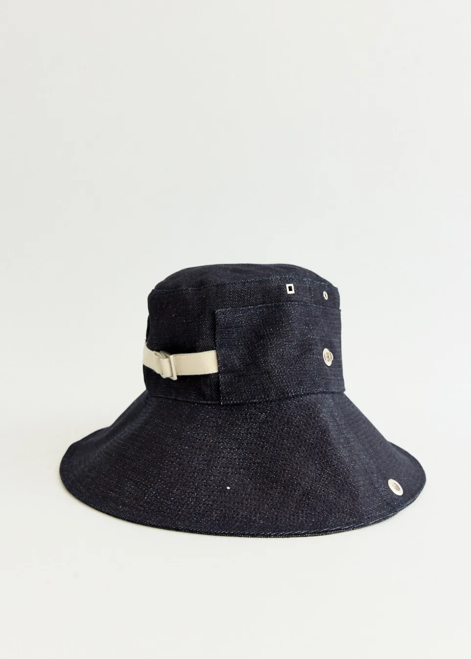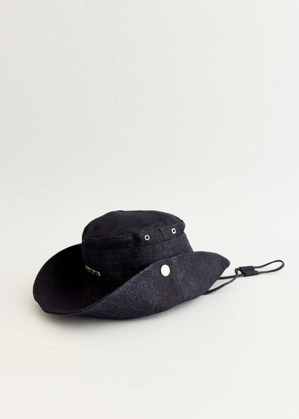 Vivacious and modernist French fashion-house, Jacquemus, can be described as a phenomenon. The brand’s accessories and ready-to-wear collections are consistently awe-inducing season after season. The Le Bob De-Nimes is a stitched bucket hat, a classic silhouette from the brand. Crafted from raw denim, it features a long, adjustable strap, topstitched visor, side snaps and ventilation grommets, adorned with with a silver-toned metal hardware logo at the front.