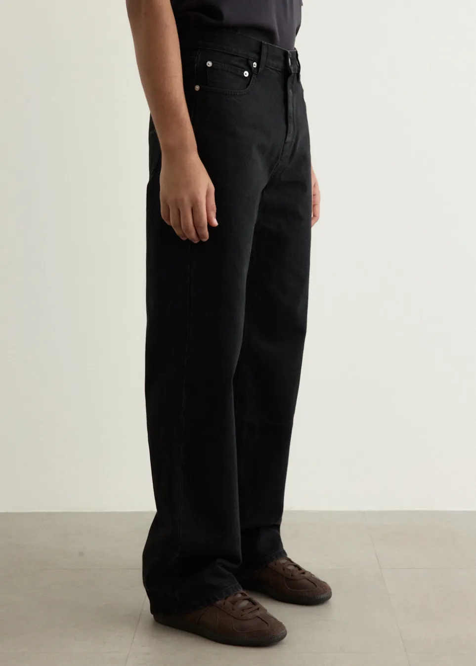 – Five-pocket style with studs and rivets