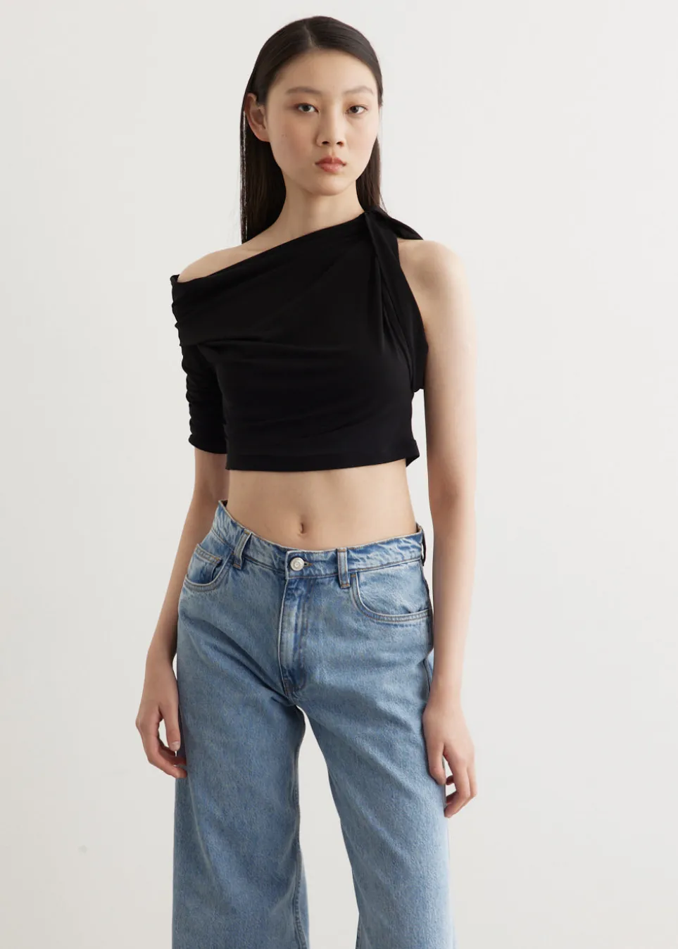 – Knotted detail at neckline on left shoulder