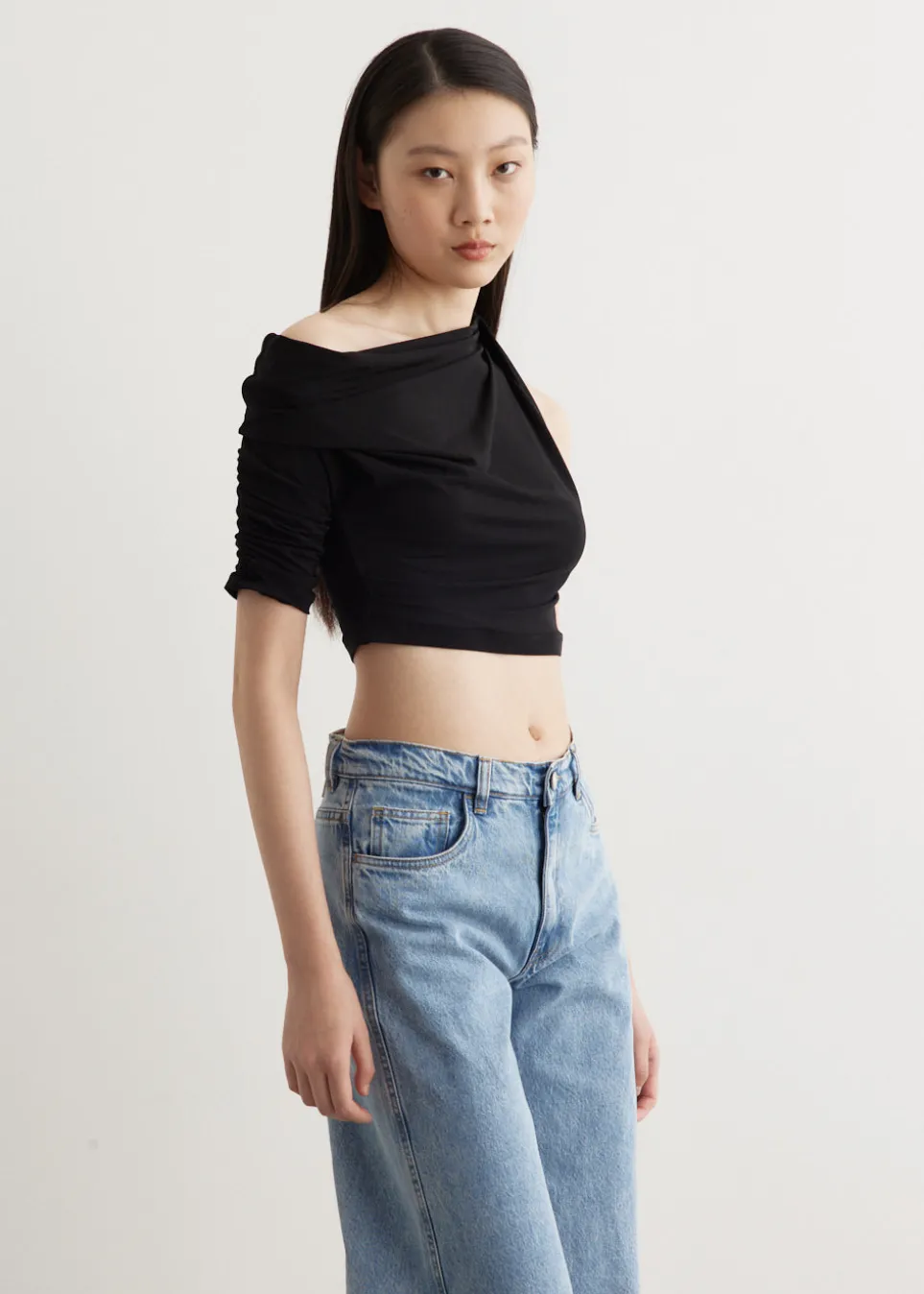 – Elbow-length sleeve on right side
