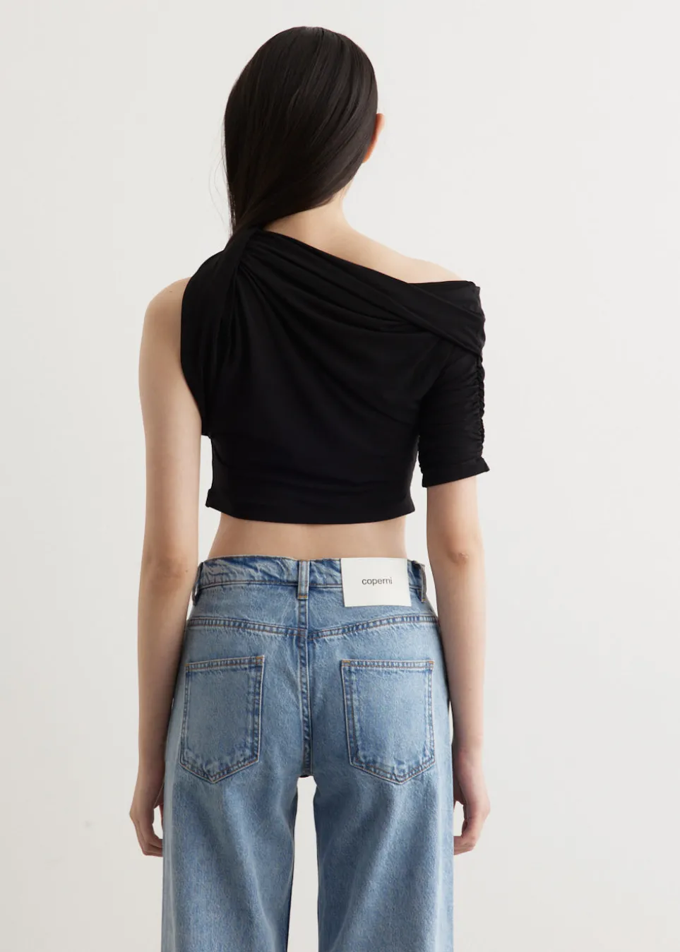 Vivacious and modernist French fashion-house, Jacquemus, can be described as a phenomenon. The brand’s accessories and ready-to-wear collections are consistently awe-inducing season after season. The Le Haut Drapead boasts a cropped silhouette and a sleek slim fit. Its asymmetrical boat neckline is elevated by a unique knotted detail on the left shoulder, while the right side features a chic elbow-length sleeve.