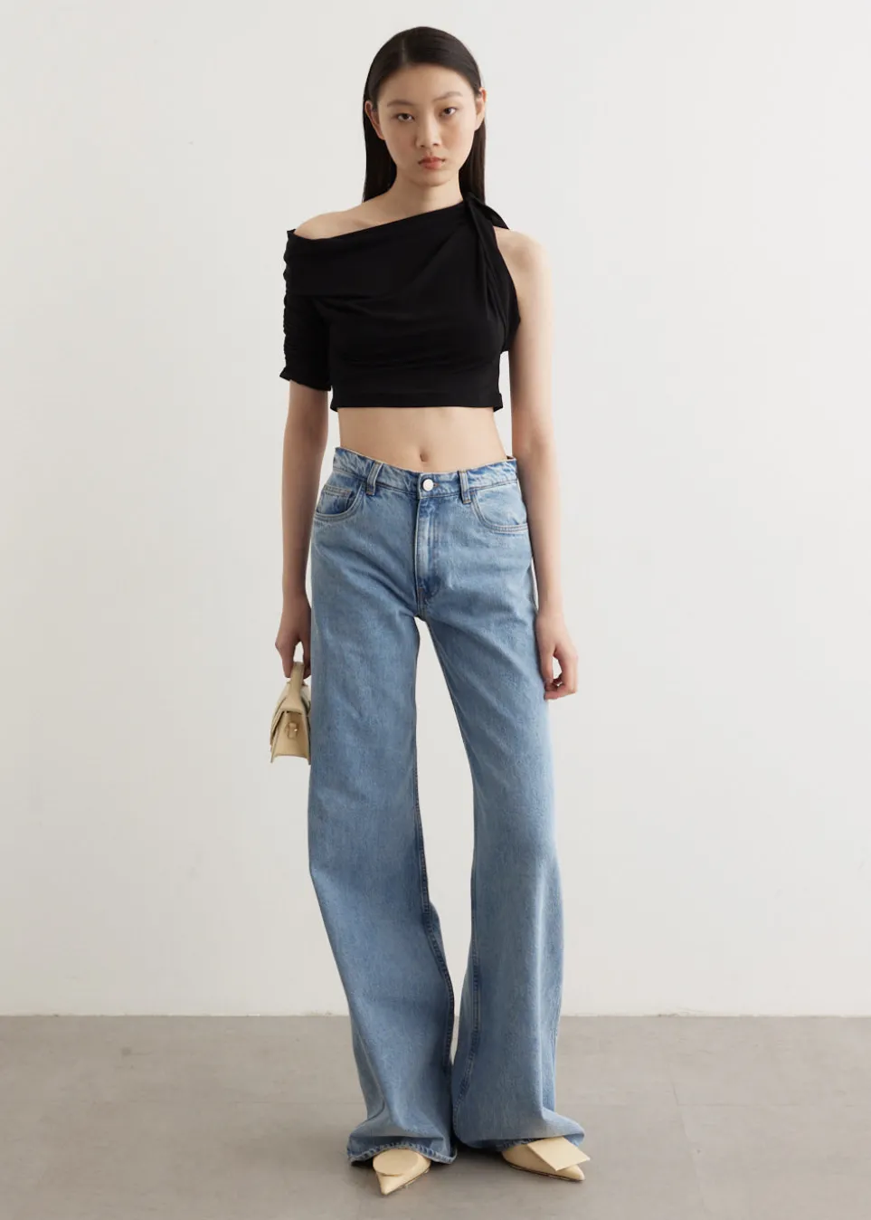 – Asymmetrical boat neckline