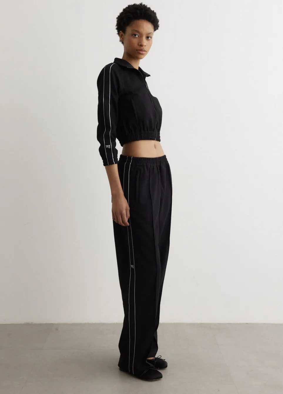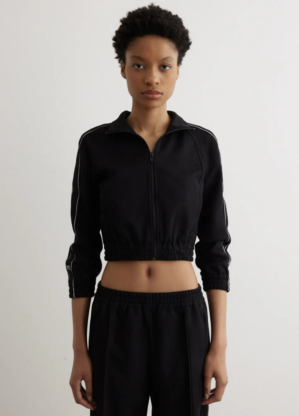 Inspired by elements of New York nightlife and street culture, accessories and apparel from Alexander Wang are instant icons. Adorned with shimmering rhinestone embellishments and branded details, each piece in the collection sparks youthful spirit and urban attitude. Made from durable polyester, the Logo Tape Cropped Track Jacket is cut to a cropped, relaxed fit. Featuring a logo tape design down the sleeves, a high neck, side pockets and a zip closure. Pair with the Logo Tape Track Pants for a subtle branded look.