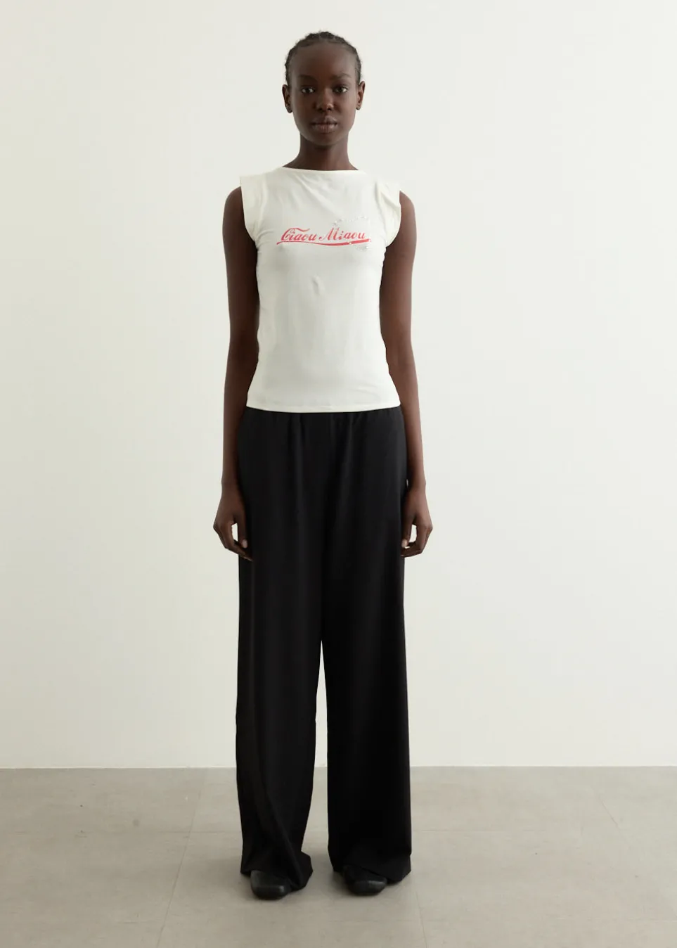 MIAOU was born where French-girl style meets Southern California-cool. The label takes vintage silhouettes and turns them into elevated, contemporary garments which echo supermodel style from the ’90s. Crafted from a soft stretch jersey, the Lucia Top is cut to a slim fit, adorned with a “Ciaou Miaou” print at the front with a jewelled accent.