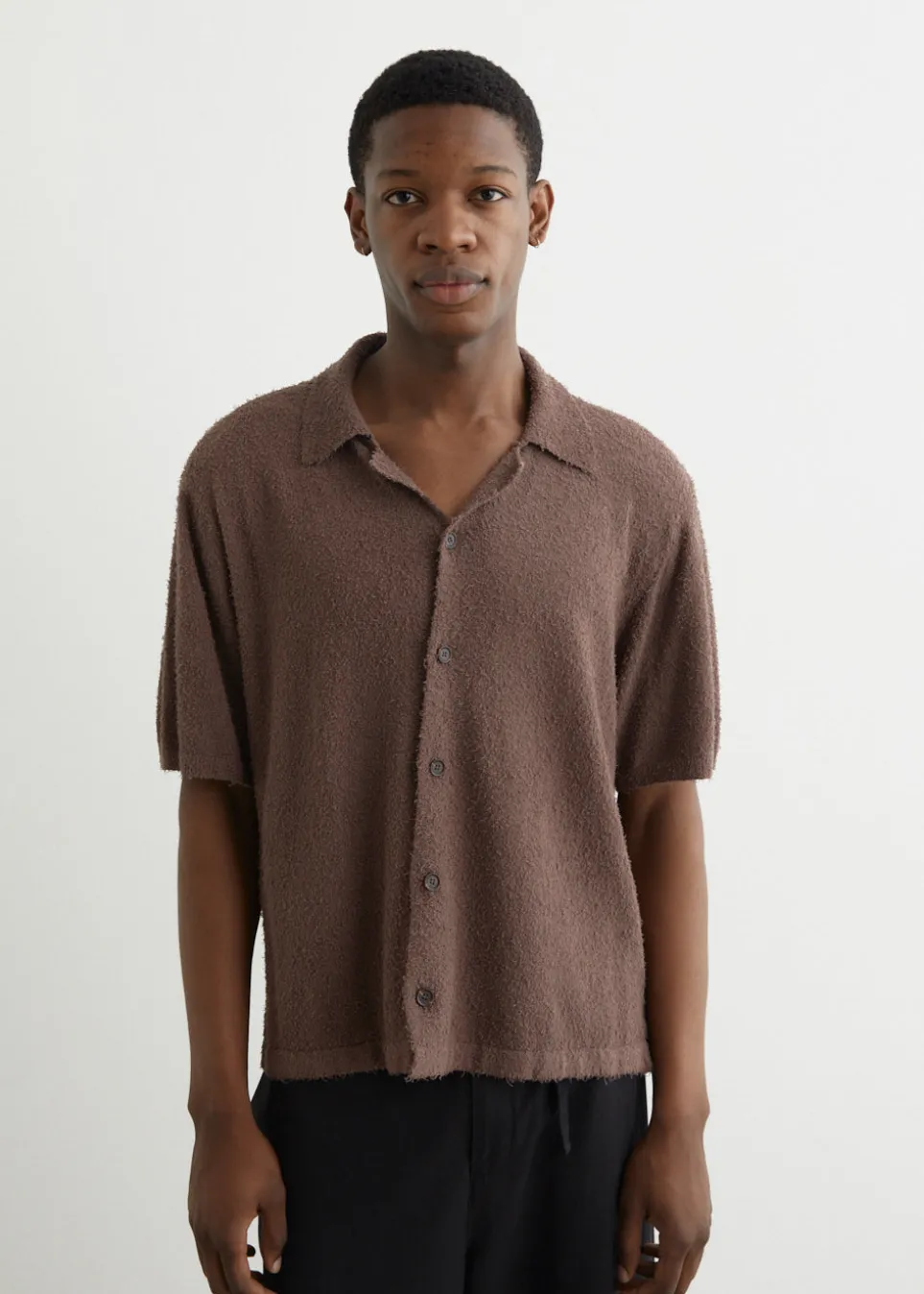 Incu Collection blends masculine and feminine styles creatively, offering refined tailored silhouettes and curated detailing for a unique and functional fashion statement. Crafted from a cotton-nylon blend, the Nineteen Seventy Boucle Knit Short Sleeve Shirt boasts a boucle knit texture and features contrasting coloured ribbed trims at the collar, placket and sleeve hems.