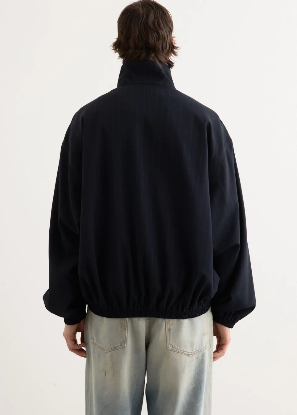 Defined by its experimental take on Scandinavian minimalism, Acne Studios blends technical design with an unexpected palette and androgynous style cues. Constructed from a technical stretch viscose, the Olandios Vis Pinstripe Jacket is cut to a relaxed fit and features a stand collar, a two-way zipper closure, side seam pockets and is finished with a seasonal bow embroidery on the chest and all-over pinstripes.