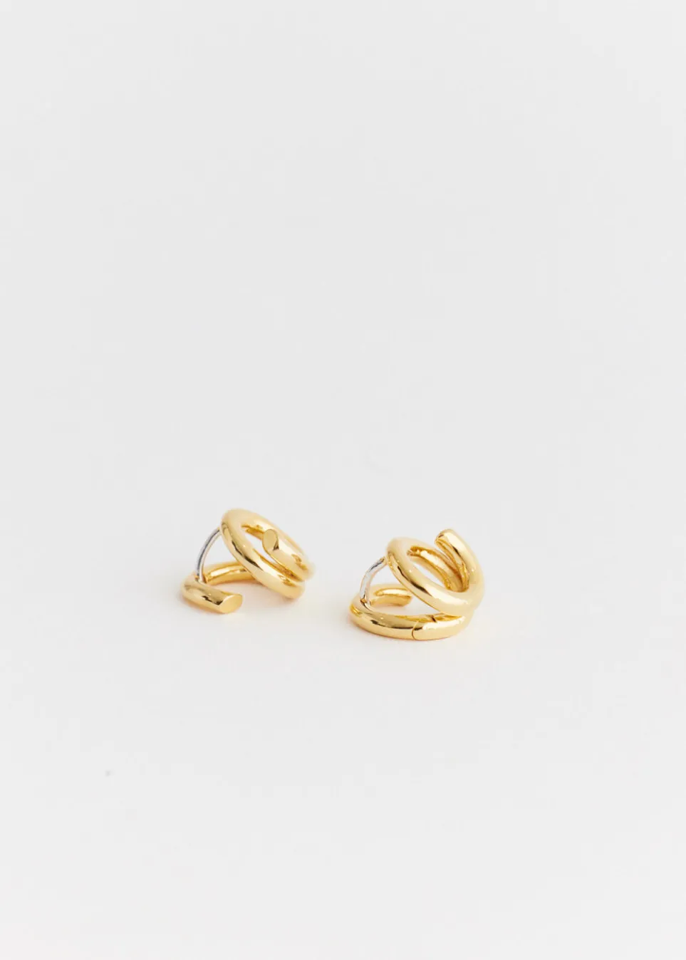 Cult Korean jewellery brand Numbering draws on the bizarre and beautiful, with the contradiction of the extraordinary and the ordinary. Crafted from gold plated sterling silver, the Open Coil Earrings feature a unique coil design that wraps around the earlobe. Their appearance changes depending on the angle they are worn, making them more noticeable when viewed from the side.