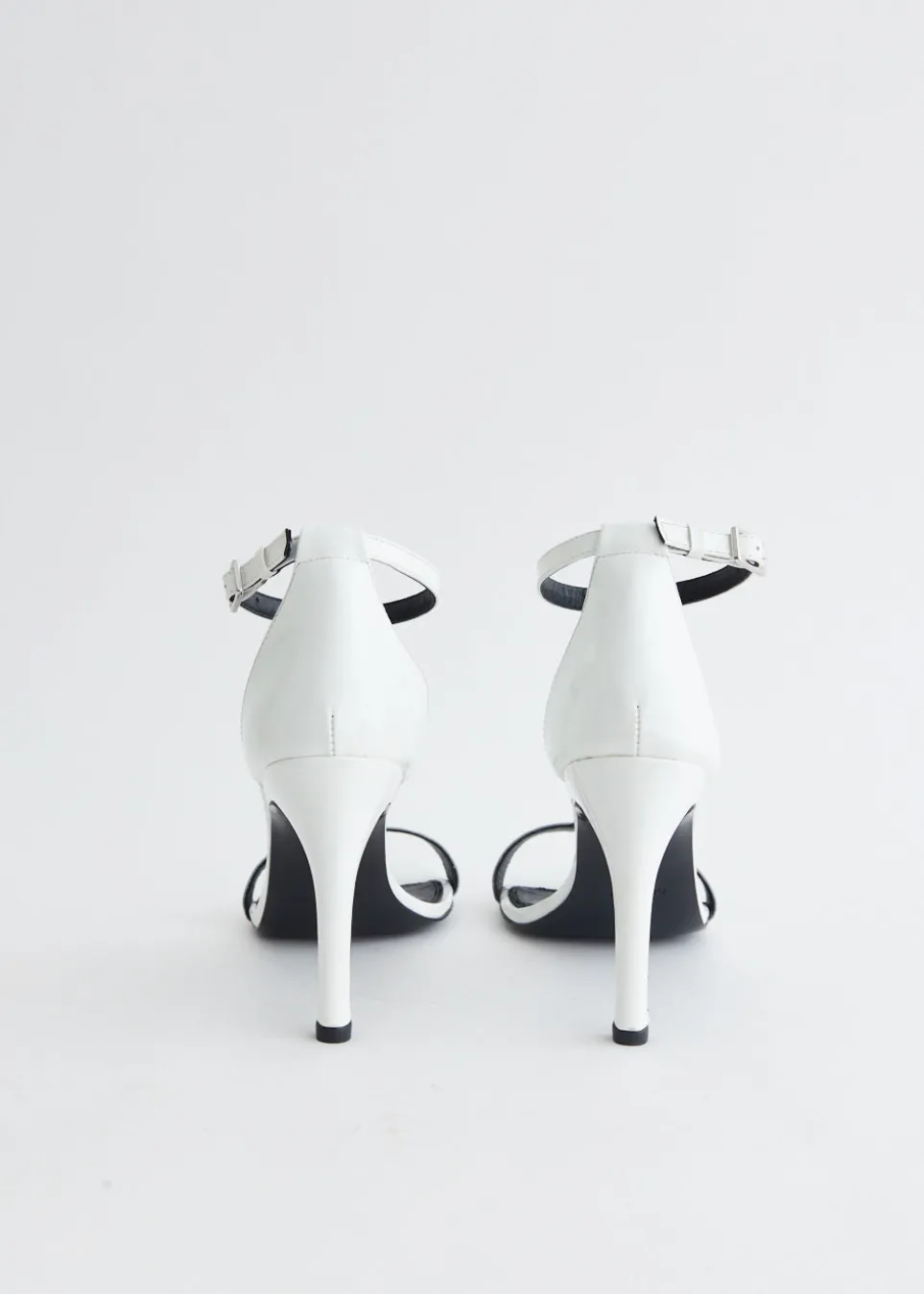 Coperni was established in Paris in 2014 by Sébastien Meyer and Arnaud Vaillant. The brands sleek version of minimalism is heavily influenced by the digital age, with a particular focus on asymmetry and structure. The Patent Skinny Strap Logo Sandals are made with a leather upper and sit atop a leather heel. It secures with a buckle at the ankles and is finished with a rubberised logo at the vamp.