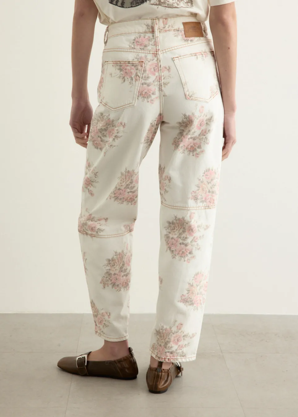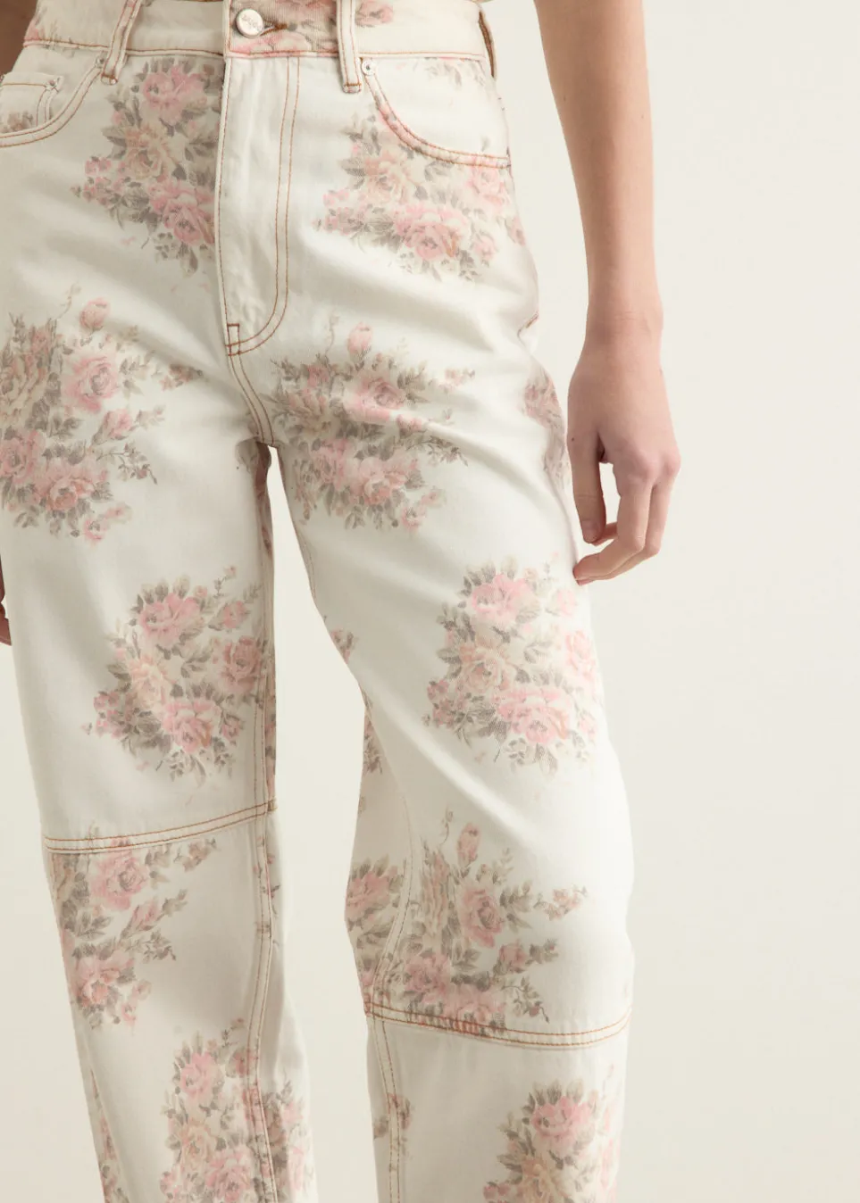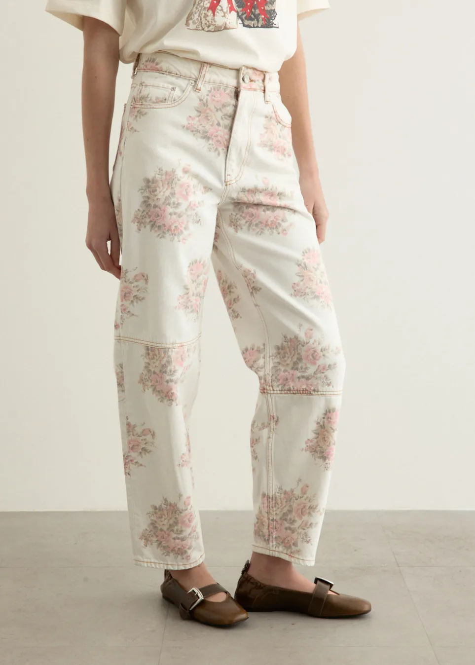 Danish label Ganni blends streetwear trends with a playful touch of humour through bold prints and colour palettes, voluminous silhouettes and easy-to-wear fabrics. Crafted from rigid organic cotton denim with a floral print, the Print Denim Stary Jeans feature a voluminous curved leg with a high-rise cut, ideal for a snug waist fit and comfortable through the hips and thighs. Complete with a zip and button closure, 5 pockets, belt loops and a GANNI logo patch on the back pocket.