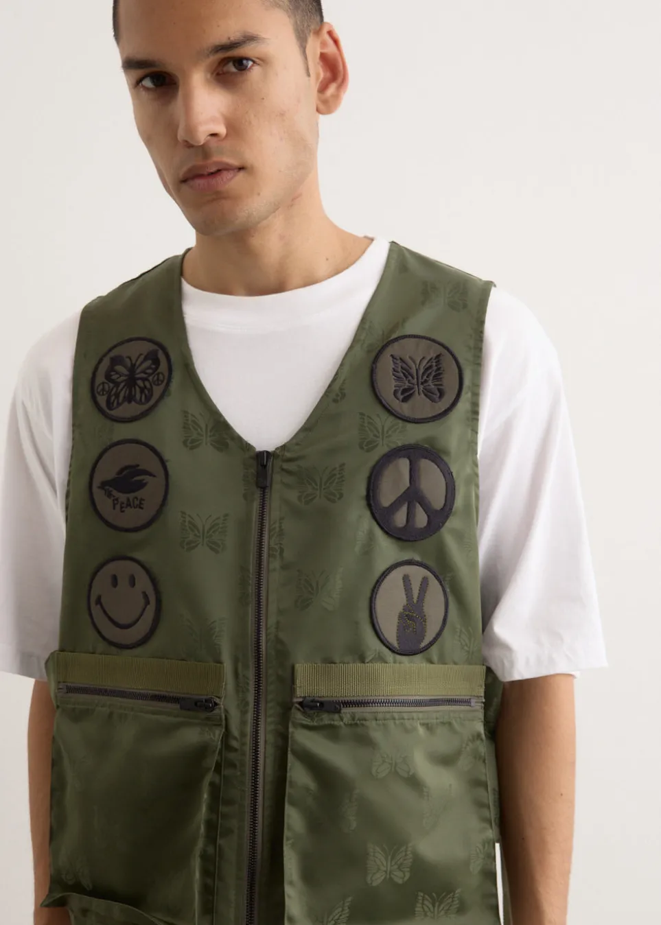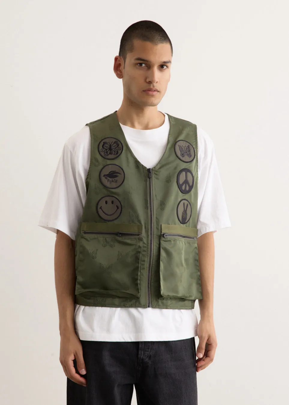 Heavily inspired by Americana and military aesthetics, Needles founder Keizo Shimuzu has translated this inspiration into designs known for their function and style. Originally designed for U.S. military radio operators, the Radio Vest features practical underarm pockets and an extension belt that connects the back to the side pockets. It’s finished with the brand’s signature papillon jacquard and distinctive patches.