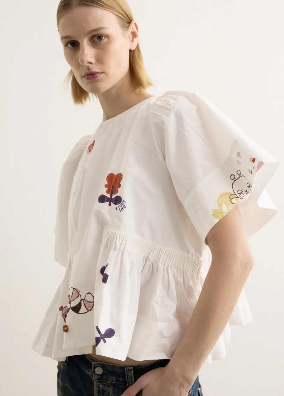 With an ethical approach to production, STORY mfg. looks to biodegradable materials, natural dye processes and local craftsmanship to create each collection. A relaxed silhouette in organic cotton, the Ramson Top showcases hand block printed artwork by Shana Sadeghi-Ray. Finished with 3/4 sleeves, delicate cartridge pleats at the sides, and a subtle rear button closure, blending artful detail with everyday ease.
