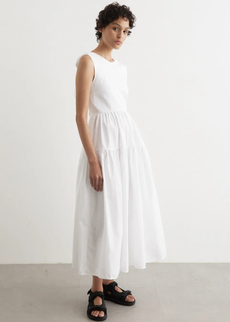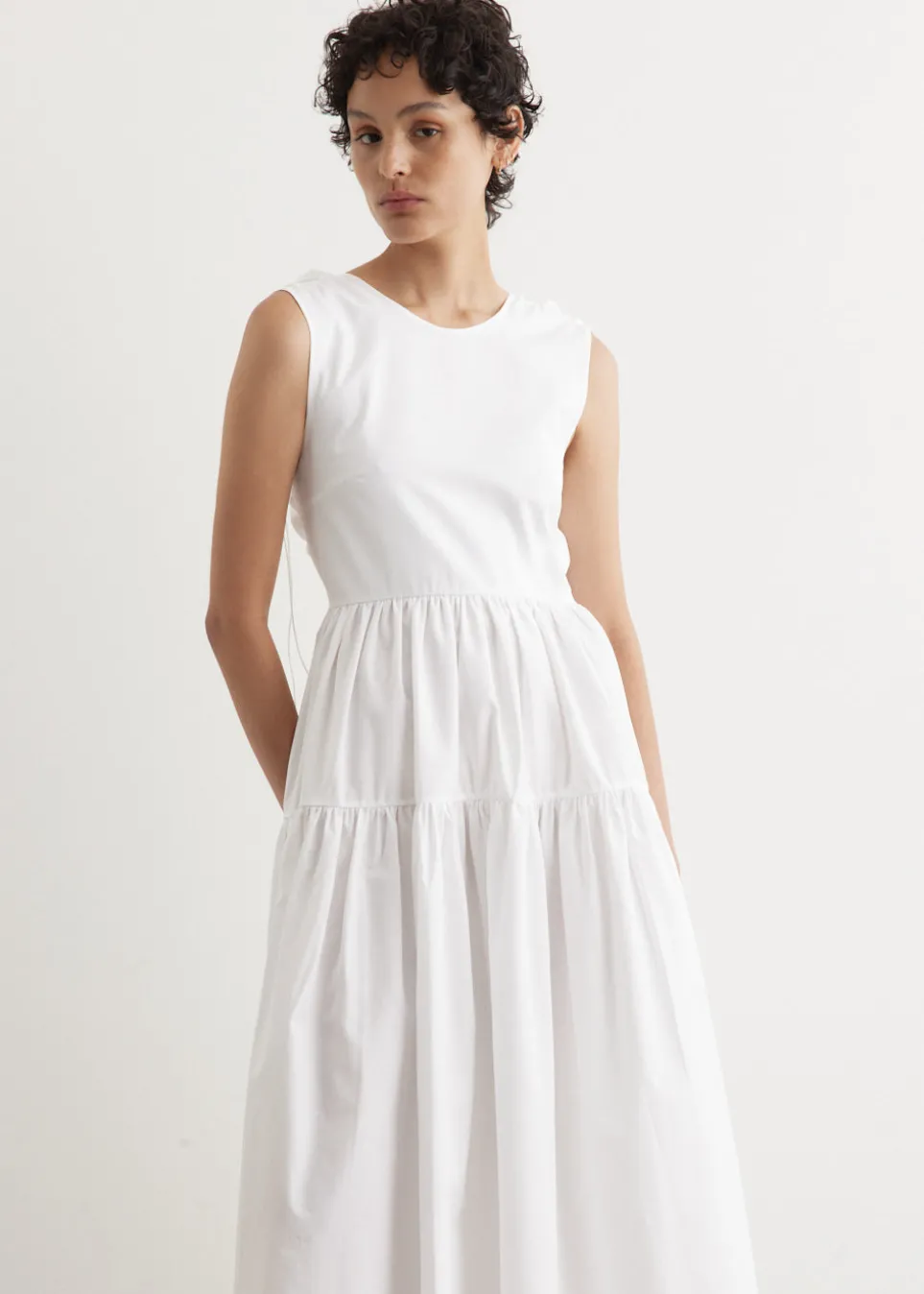 Cecilie Bahnsen, a Danish fashion designer, is renowned for her eponymous brand that blends traditional craftsmanship with contemporary design. Her collections, known for voluminous silhouettes and intricate textures, have earned acclaim for a modern, avant-garde take on femininity. The Ruth Gown is a maxi-length dress, that is designed with crisp cotton fitted bodice, balanced by a full skirt.