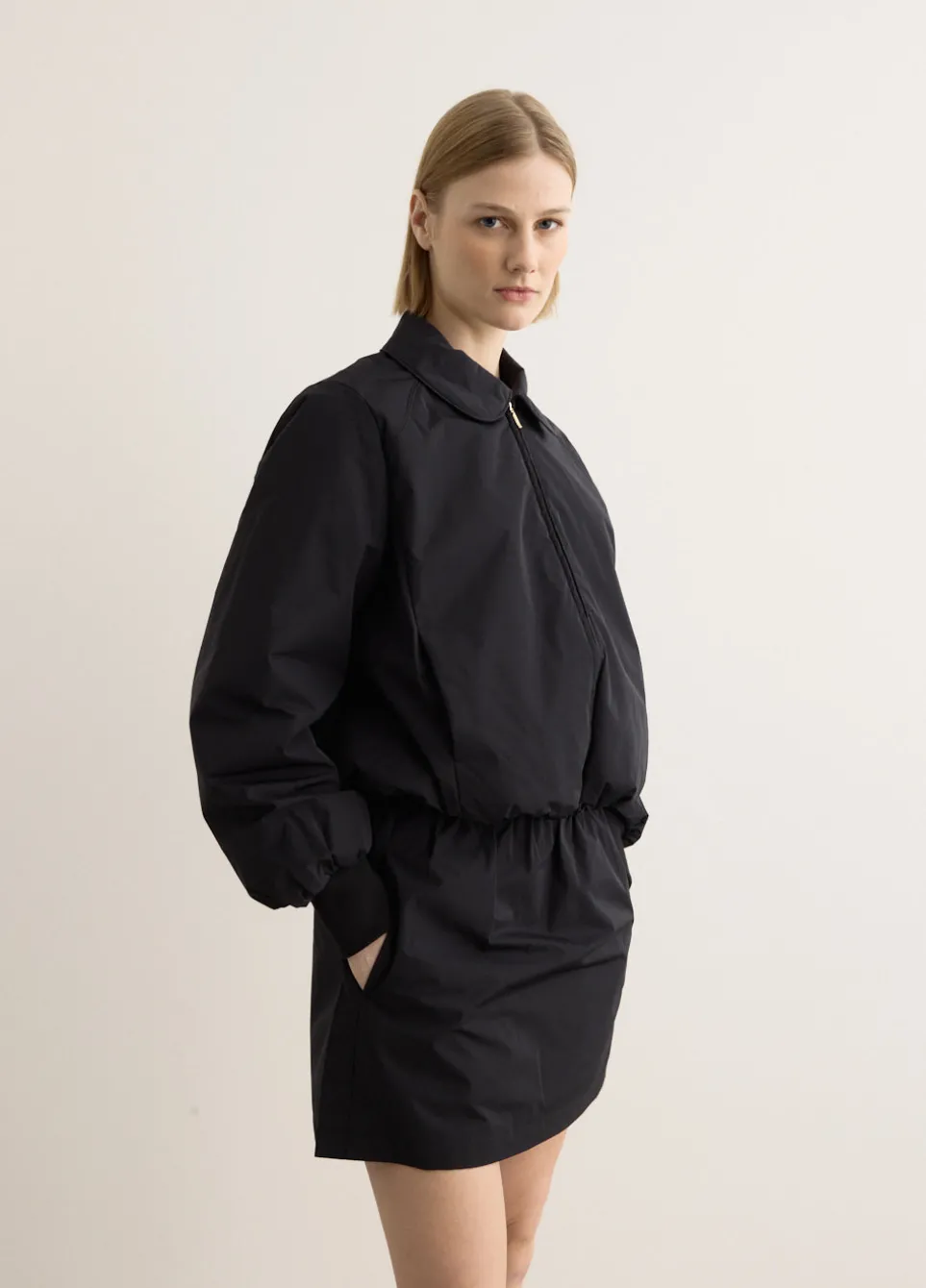 Established in 1987 by fashion designer Jean Touitou, A.P.C. is known for its relaxed and minimal approach to design. Crafted from a lightweight, water-resistant fabric, the Salome Jacket features a cropped length and boxy silhouette, echoing the classic bomber style. Designed with a round collar, zip closure, and elasticated hem, it subtly cinches the waist for a flattering fit. Pair with your favourite trousers for an effortlessly refined look.