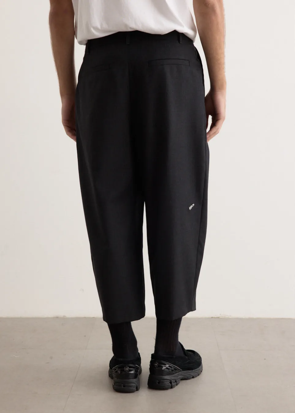 South Korean brand and creative collective ADER Error have been creating garments since 2014. Their output has a certain youthfulness and unique, playful minimalism, with bold primary colours, clashing textures and paradoxical slogans. Crafted from wool, the Significant Pleat Pants boast a voluminous wide leg with a low-rise fit. The front is adorned with pleats while the back is adorned with the brand’s signature zigzag embroidery.