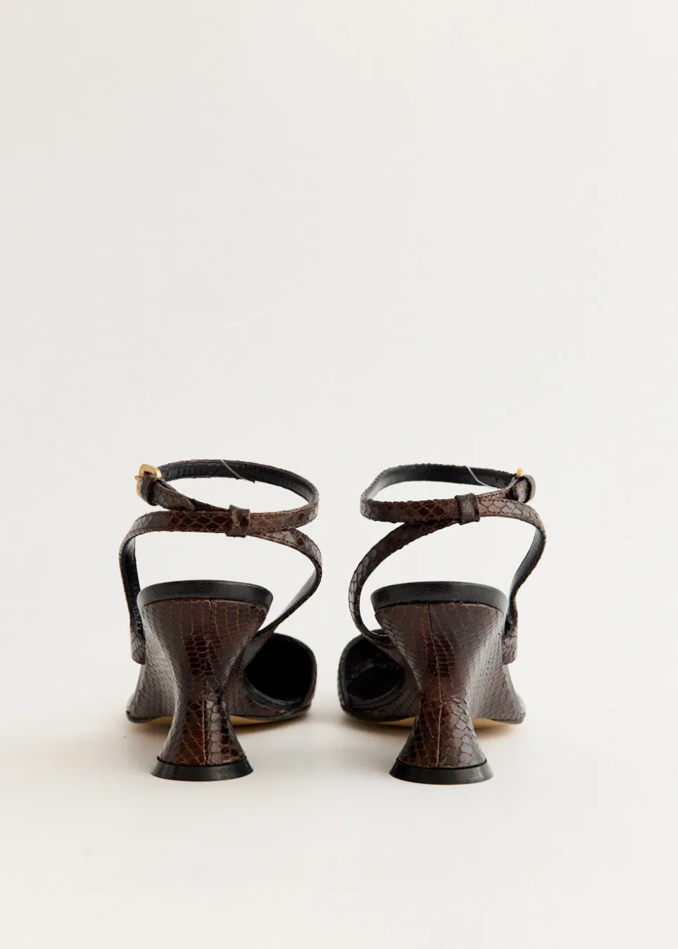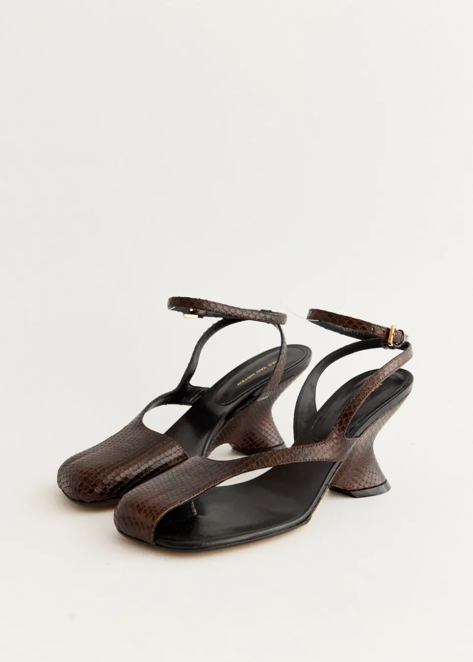 Dries Van Noten rose to fame as one of the original ‘Antwerp Six’. Applying an avant-garde approach to design, the Belgian-born creative has cemented his status as a leading voice in luxury. Crafted from premium calf leather, the Snake-Effect Wedge Heels feature smooth leather uppers with a striking snakeskin print. The open square toe is cut to an asymmetric silhouette, set atop a sculptural 65mm abstract wedge. A buckle-fastening ankle strap completes the design, ensuring a secure fit and all-day comfort.